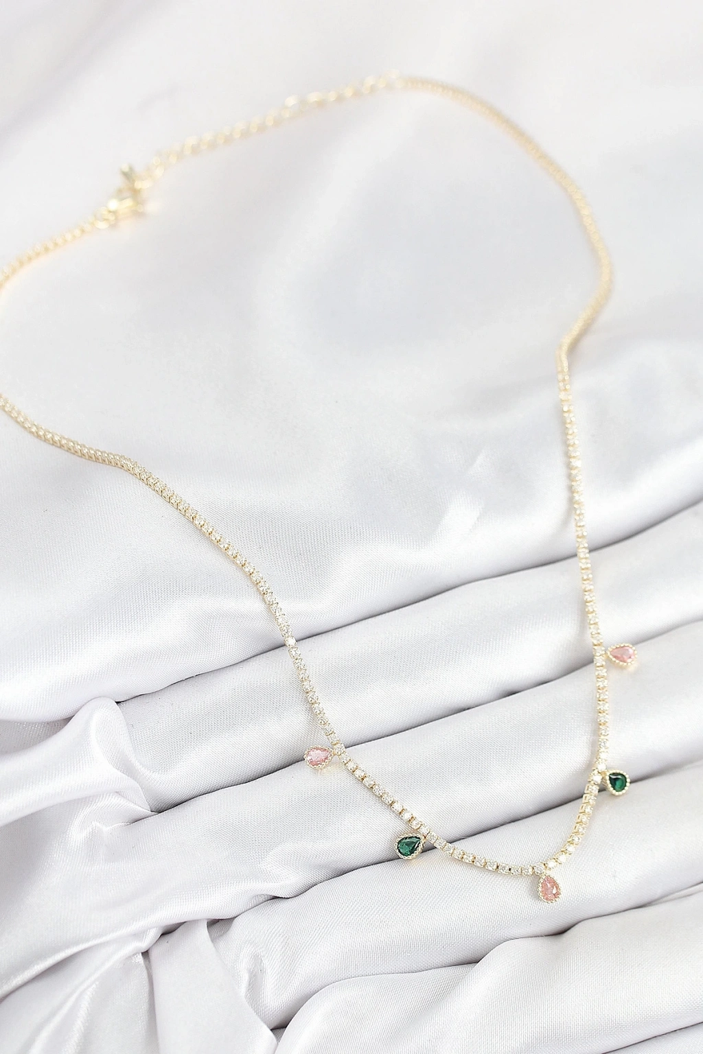 ® Pirinç Zirkon Taşlı Su Yolu Damla Model Gold Renk Kadın Kolye