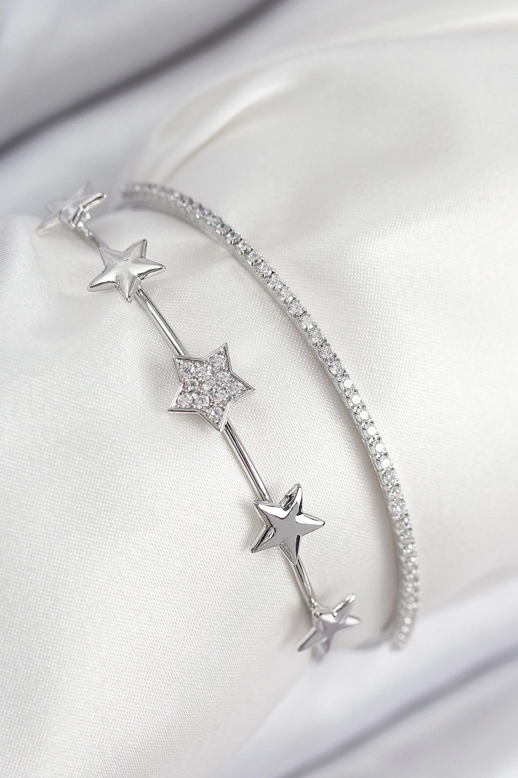 ® Pirinç Zirkon Taşlı Yıldız Model Gümüş Renk Kadın Bileklik