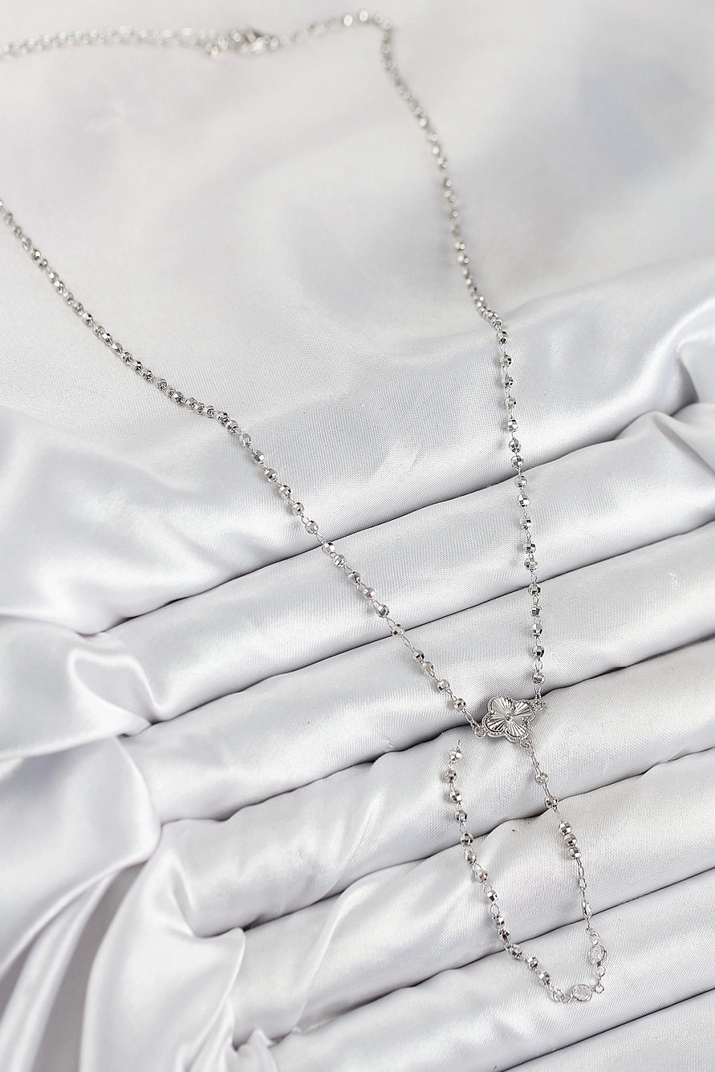 ® Pirinç Zirkon Taşlı Yonca Model Gümüş Renk Kadın Y Kolye