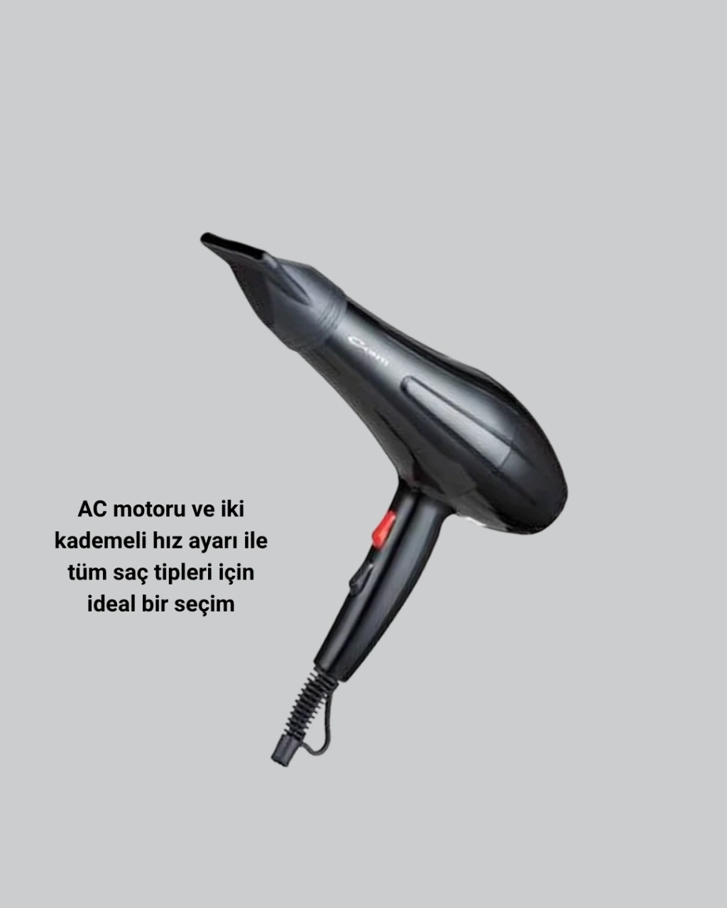 Yeni nesil güç ve performansla tanışın!Bu 2200 Watt fön makinesi, profesyonel AC motor teknolojisiyle güçlü hava akımı sağlar, saçlarınızı kısa sürede kurutur ve şekillendirir.İki farklı hız ve sıcaklık ayarı, her saç tipi için özel kurutma deneyimi sunar.İnce, kalın veya dalgalı fark etmeksizin, istediğiniz sonucu kolayca elde edebilirsiniz.Soğuk üfleme özelliği, fön işleminin sonunda saç stilinizi sabitlerken saç tellerinin canlılığını korur.Bu sayede hem ışıltılı hem de uzun süre kalıcı bir görünüm kazanırsınız.Hafif ve ergonomik tasarımı, uzun süreli kullanımlarda bile konfor sağlar.Seyahatlerde kolayca taşınabilir ve her ortamda profesyonel sonuç verir.Dayanıklı AC motoru, yüksek performansı uzun ömürle birleştirir.Bu özellik, cihazı sadece ev kullanımı için değil, profesyonel salonlar için de ideal hale getirir.Modern, kompakt ve fonksiyonel yapısıyla hem güçlü hem de şık bir fön deneyimi sunar.Isıya dayanıklı kablo ve askı halkası sayesinde güvenli kullanım sağlar.Saçlarınızı hızlı, etkili ve yıpratmadan kurutmak için en iyi çözüm!Yeni nesil teknoloji, profesyonel kalite ve zarif tasarım bu fön makinesinde buluşuyor.