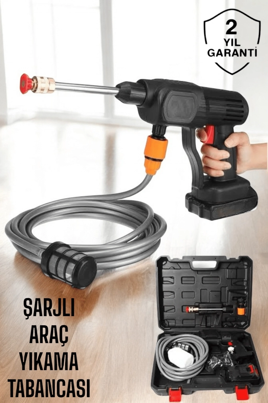 Yüksek Güçlü Motor 300W motorlu, maksimum 30 Bar su basıncına sahiptir. Verimli ve hızlı temizlik için yeterince güçlüdür. Ayrıca aşırı sıcaklık için otomatik kapanma özelliğine sahip bir sıcaklık koruma fonksiyonuna sahiptir. ve aşırı yük, güvenlik tehlikelerini ortadan kaldırabilir.Kullanımı Kolay kendinden emişli / musluk 2 çeşit su girişi, su almak daha uygun. Kurulumu kolaydır, tüm arayüzler hızla takılıp kurulur. Filtre sepetli 5 m'lik hortum, kirleri, parçacıkları, atık yaprakları, camuru vb. etkili bir şekilde filtreleyebilir. Kovadan/gölden/nehirden/musluktan kolayca su alabilirsiniz. Bu kablosuz yüksek basınçlı su tabancası, geleneksel küçük yüksek basınçlı temizleyicilerden daha taşınabilirdir.Şarj Edilebilir Pil  1 adet çıkarılabilir 15000mAh yüksek kapasiteli lityum pil ile donatılmıştır ve uzun süreli kullanım sağlar. Dolu şarjlı tek pil ile aracınızı rahatlıkla yıkayabilirsiniz. Bir kez tamamen şarj olması 4 saat sürer ve tek bir pilin pil ömrü 25 dakikaya kadar çıkar. Gövde su geçirmez özel malzemeden yapılmış olup, su ve elektrik izolasyonu daha güvenlidir. Her kullanımdan sonra pili kuru tutun, zamanında tamamen şarj edin.Mükemmel Hizmet Bu çok amaçlı yüksek basınçlı su tabancası, araba yıkama, bahçe sulama, tarımsal sulama ve günlük temizlik için çok uygundur. kullanımınız için 2 farklı nozul etkili temizlik. Akülü kablosuz yüksek basınçlı temizleme makinemiz çift sulama sistemine sahiptir. Sektör modeli ve doğrudan enjeksiyon modu için uygun iki çeşit nozul ile donatılmıştır. Sağlanan yüksek/düşük basınçlı nozullar ve temizlik maddesi tankları, araçları, bisikletleri, tekneleri, pencereleri ve şeritleri temizlemek için yaygın olarak kullanılabilir. Güç: 300W / 48V - 10ABatarya Kapasitesi: 15.000mAhKullanım Süresi: 20-30 DakikaAğırlık: 2kgHortum Uzunluğu: 5metreÇalışma Basıncı: 24.5bar/350psiPüskürtme Tepki Hızı: <15 sn.Su Emme Yüksekliği: >3.5mModel No: 8106 Paket İçeriği:* 48V Sulama Tabancası* Taşıma Çantası* 24V 15.000mAh Akü* 5 metre esnek boru* EU şarj adaptörü* Hortum filtresi* 2 Adet uç (düz ve dağınık su püskürtmesi)* 2 adet Hortum bağlantı ucu* Uzatma şaftı* Köpük veya ilaç haznesi