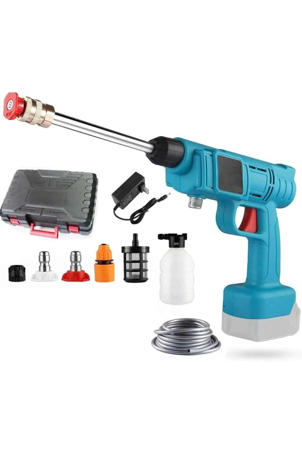 Bu çok yönlü yüksek basınçlı temizleme makinesi, çift sulama sistemine sahip olup, yüksek ve düşük basınçlı püskürtme modları için iki farklı nozul içerir. Düz ve dağınık su püskürtme başlıkları, temizlik ihtiyacınıza göre ayarlanabilir, böylece hem hassas yüzeylerde hem de inatçı kirlerde en iyi temizliği sağlar. Köpük veya ilaç haznesi ile, aracınızı temizlerken deterjan kullanabilir ve ekstra hijyen sağlayabilirsiniz. Kompakt taşıma çantası, cihaz ve tüm aksesuarlarını düzenli bir şekilde saklamanıza ve taşımanıza yardımcı olur. Ev, bahçe, kamp, araç yıkama gibi birçok alanda pratik bir çözüm sunan bu yüksek basınçlı temizleyici, güçlü motoru, uzun pil ömrü ve çok yönlü aksesuarları ile en iyi temizlik deneyimini sunar.