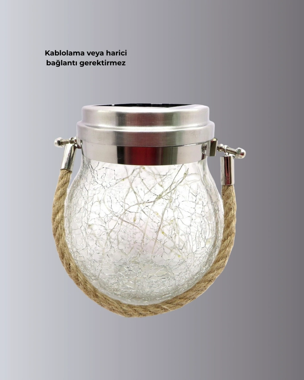 Kablolama veya harici bağlantı gerektirmeyen solar LED cam sarkıt aydınlatma, zahmetsiz kullanım sunar. Güneş enerjisiyle çalışan sistemi sayesinde enerji maliyeti oluşturmaz. Dahili 600 mAh solar pil, gece boyunca aydınlatma sağlar. Suya dayanıklı yapısı dış mekân koşullarına uygundur. Bahçe, teras ve balkonlarda hem aydınlatma hem de dekoratif amaçlı kullanılabilecek fonksiyonel bir üründür.