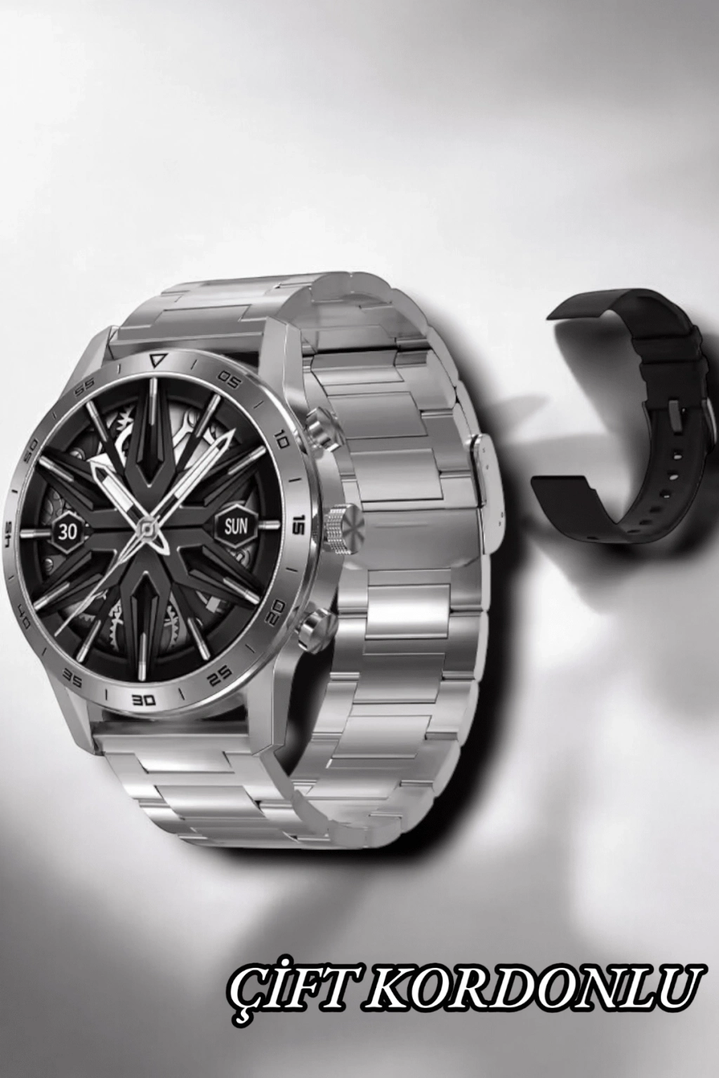 Spor ve Sağlık Tutkunlarına Özel Gelişmiş Akıllı Saat!Bu akıllı saat, hayatınıza hem teknolojiyi hem de konforu bir arada getiriyor:• Arama ve Bildirim Özellikleri: Bluetooth 5.0 bağlantısı ile çağrı cevaplama, arama yapma ve mesaj bildirimlerinizi kolayca yönetebilirsiniz.• Sağlık ve Uyku Takibi: Nabız ölçer, kan basıncı izleme, EKG, uyku düzeni takibi ve vücut sıcaklığı ölçümü gibi gelişmiş özelliklerle sağlığınızı kontrol edin.• Spor Modları & Kalori Takibi: Çeşitli spor modlarıyla antrenman performansınızı artırın ve yakılan kaloriyi takip edin.• Kablosuz Şarj & NFC Özelliği: Temassız ödeme kolaylığı ve kablosuz şarj teknolojisiyle günümüzün ihtiyaçlarını karşılıyor.• Dayanıklılık: Suya dayanıklı yapısı, spor ve açık hava aktiviteleriniz için idealdir.• Sesli Asistan: Sadece sesli komutlarla işlemlerinizi hızla gerçekleştirin.• Şık ve Kullanışlı: Dokunmatik ekranı ve çift kordon seçeneğiyle hem tarzınıza hem de ihtiyaçlarınıza uyum sağlar.iOS ve Android cihazlarla uyumlu bu saat, teknoloji ve şıklığı bir arada sunuyor!