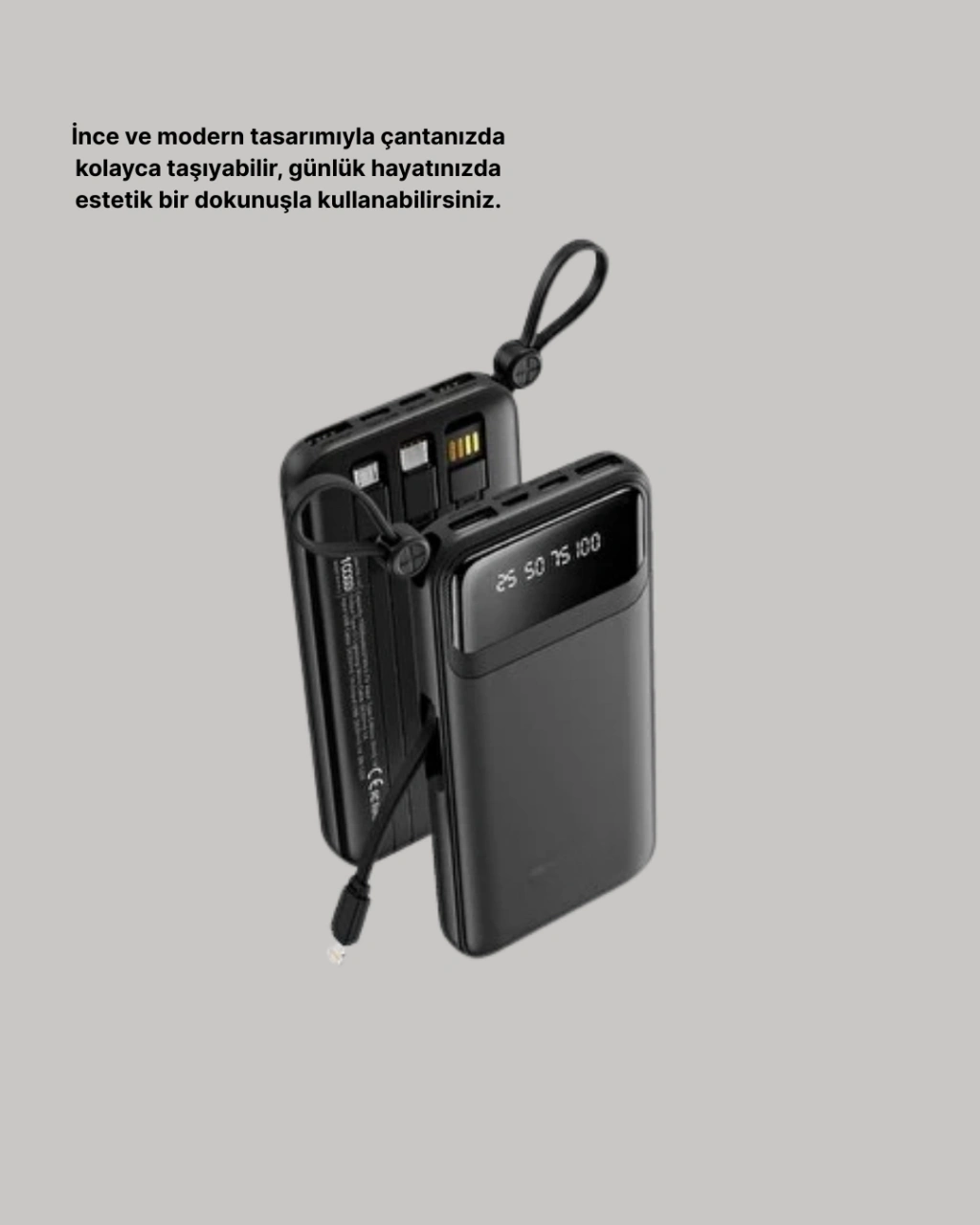 20.000 mAh hızlı şarj özellikli powerbank, güçlü kapasitesiyle tüm cihazlarınız için güvenilir enerji sağlar. 4 çıkışlı yapısı ile aynı anda birden fazla cihazınızı şarj edebilir, yoğun günlerde bile enerjinizi kesintisiz sürdürebilirsiniz.LED göstergeli tasarımı sayesinde batarya seviyesini kolayca takip edebilir, ihtiyaç duyduğunuzda hazır olduğundan emin olabilirsiniz. Ayrıca dahili fener özelliği, acil durumlarda ekstra bir işlev sunar.Güvenlik açısından gelişmiş özelliklere sahip olan bu model, aşırı voltaj, kısa devre, aşırı akım ve ısınmaya karşı koruma sağlayarak cihazlarınızı güvenle şarj etmenizi mümkün kılar. Sadece 4-5 saatlik şarj süresi ile tam dolum yapabilir. Seyahatlerde, günlük hayatta veya iş ortamında sürekli yanınızda taşıyabileceğiniz bu powerbank, güçlü performansı ve dayanıklılığı ile öne çıkar.