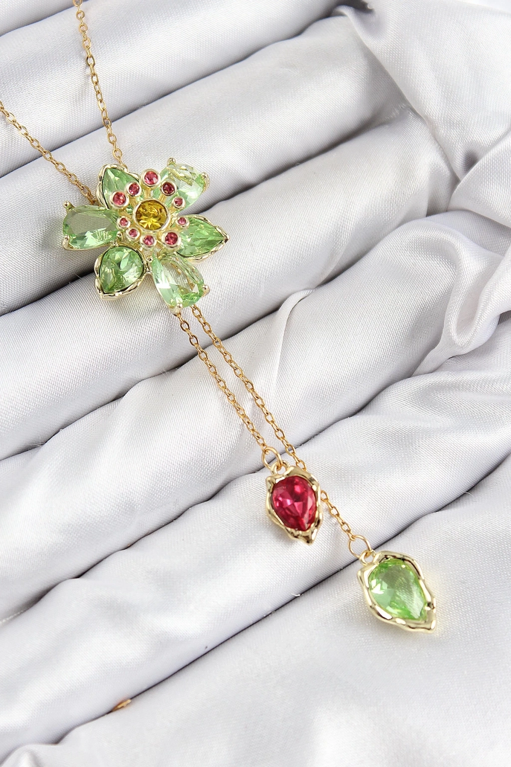 ® VIP Pirinç Zirkon Taşlı Çiçek Model Gold Renk Asansörlü Kadın Kolye