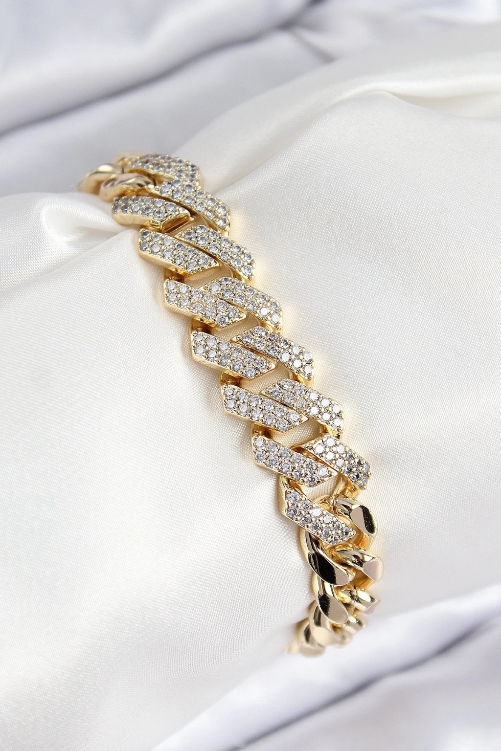 ® VIP Pirinç Zirkon Taşlı Cuba Model Gold Renk Kadın Bileklik