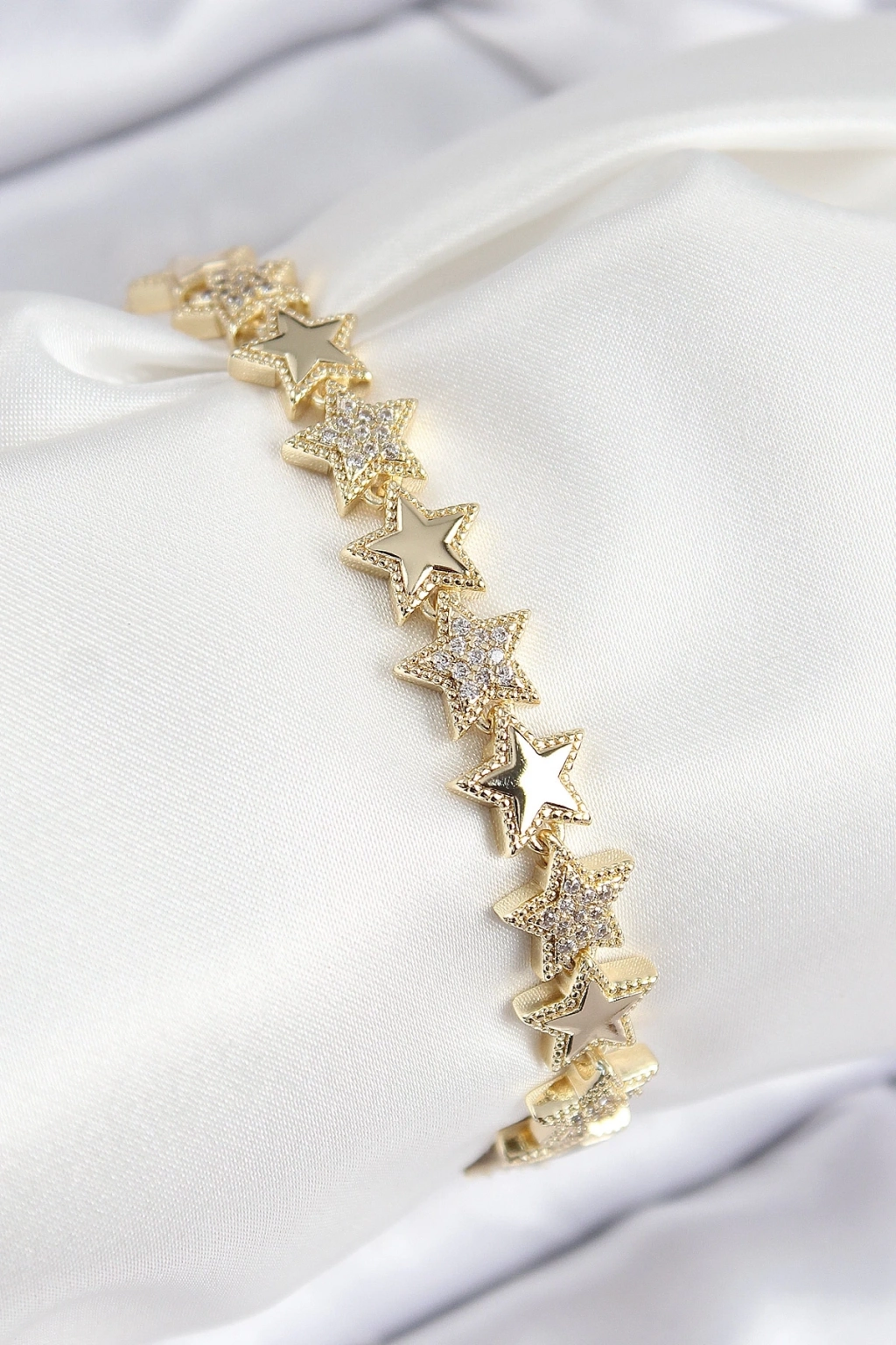 ® VIP Pirinç Zirkon Taşlı Yıldız Model Gold Renk Kadın Bileklik