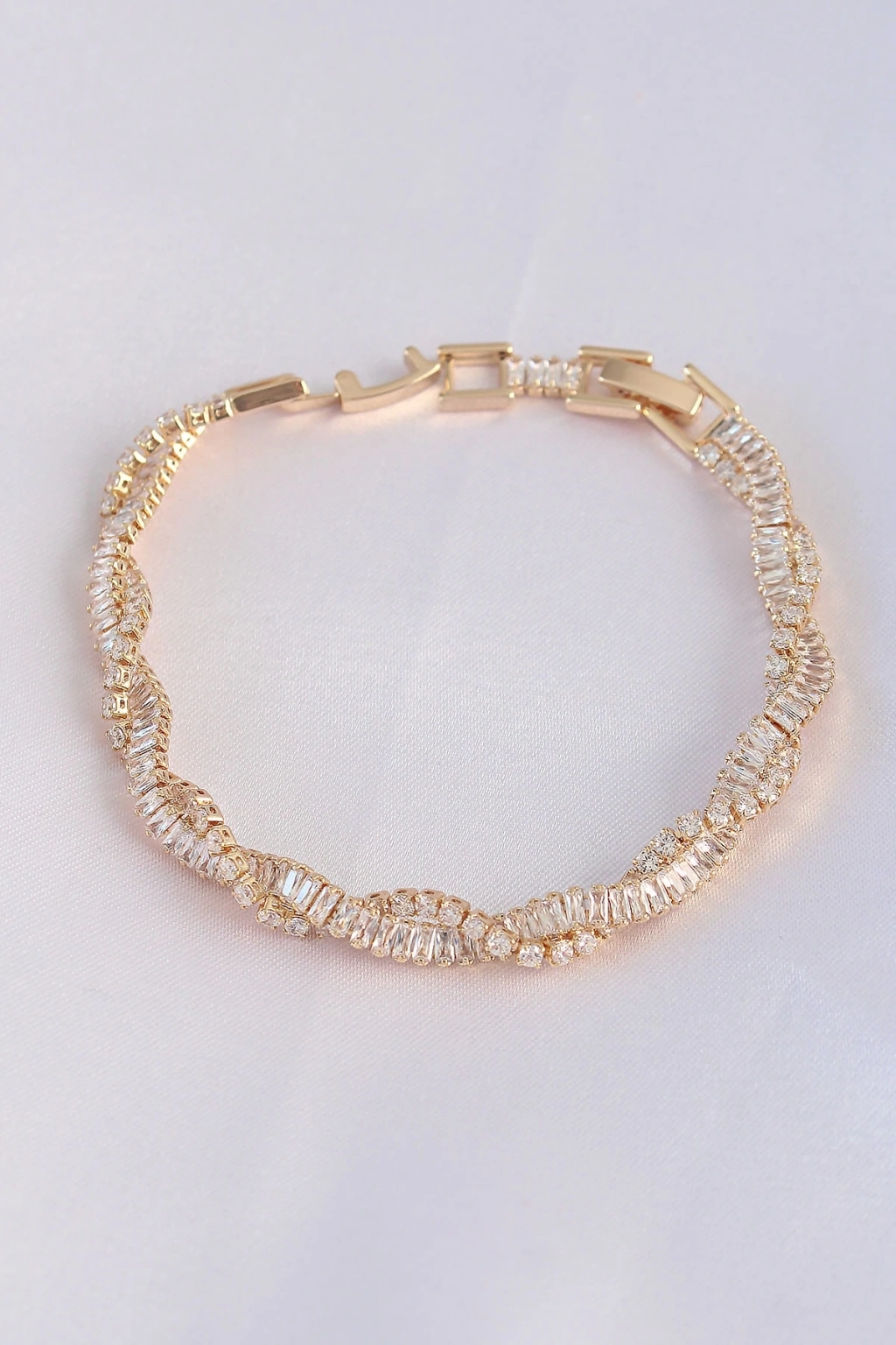 ® Vip Seri Pirinç Zirkon Taşlı Gold Renk Sarmal Model Bileklik