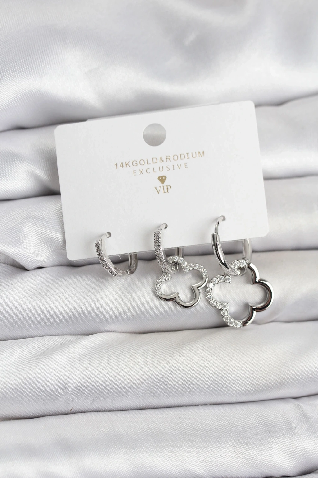 ® Yonca Model Gümüş Renk Pirinç 3'lü Kadın Küpe Seti