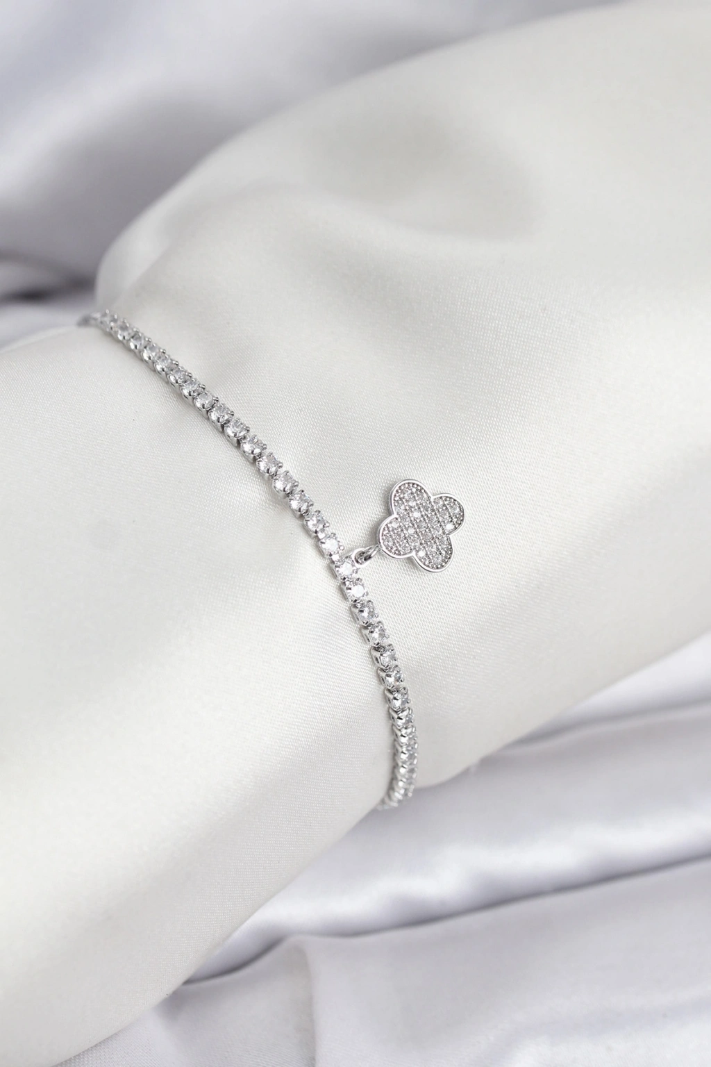 ® Yonca Model Zirkon Taşlı Gümüş Renk Asansörlü Su Yolu Bileklik