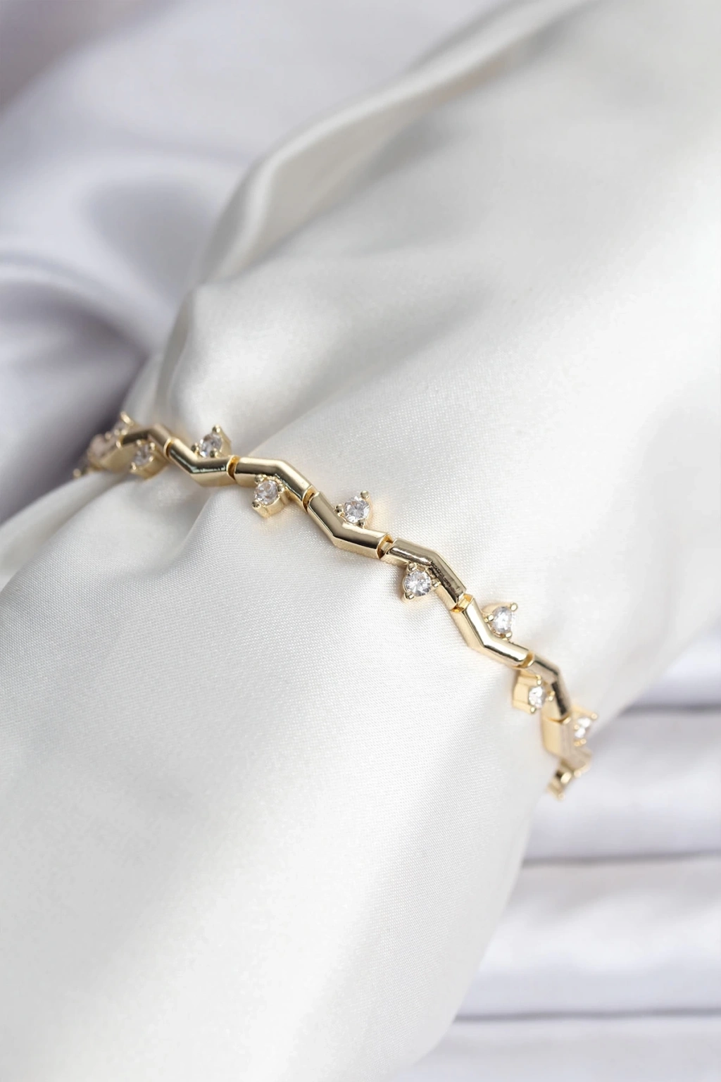 ® Zikzak Model Pirinç Gold Renk Bileklik