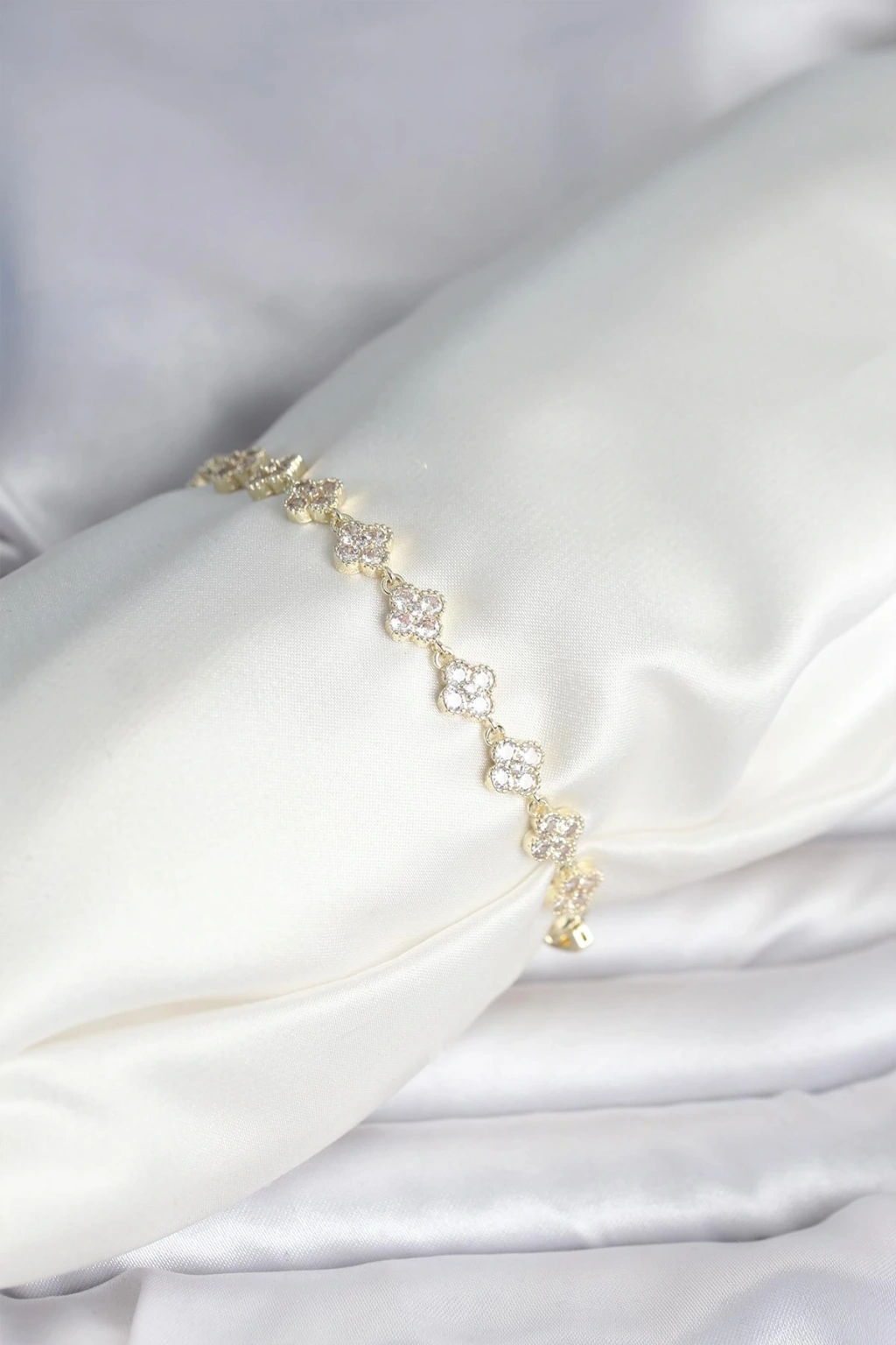 ® Zirkon Taşlı Pirinç Yonca Model Bileklik