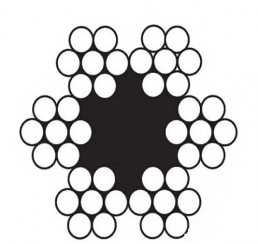 6×7 K çelik halat, 6 ana tel çelik lifinden oluşur ve her bir tel çeşitli sayıda alt tel ile sarmalanır.