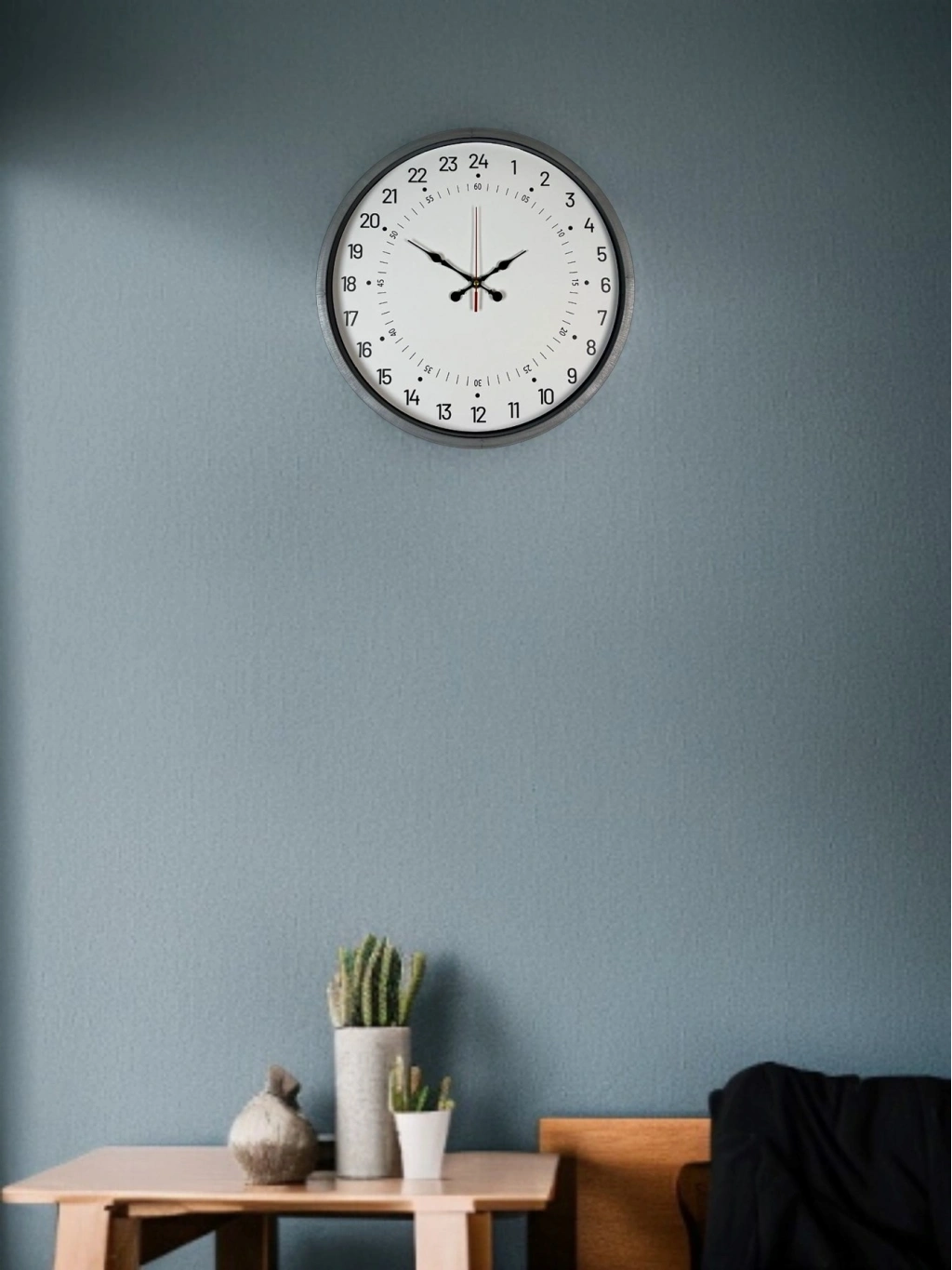 Klasik duvar saatlerinden ayrılan 24 saat göstergeli özel kadranı ile bu model, günün tamamını tek bir kadranda görmenizi sağlar. Standart 12 saatlik saatlerden farklı olarak 01–24 sistemini kullandığı için özellikle düzenli zaman takibi isteyenler için daha pratik ve sıradışı bir kullanım sunar.