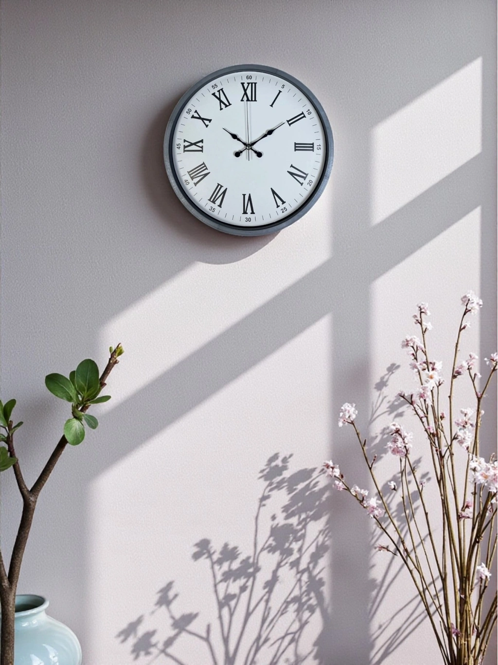 Beyaz kadran üzerine yerleştirilmiş büyük ve okunabilir Roma rakamları, saatin estetik görünümünü güçlendirirken uzak mesafeden bile kolayca okunabilirlik sunar. İnce ve zarif tasarımıyla dikkat çeken akrep-yelkovan takımı, gri çerçeveyle birlikte kusursuz bir uyum oluşturur. Sessiz akan saniye (akar saniye) mekanizması sayesinde hiçbir tıkırtı sesi çıkarmaz; yatak odası, çalışma odası, ofis gibi sessiz ortamlarda sorunsuz kullanım sağlar.