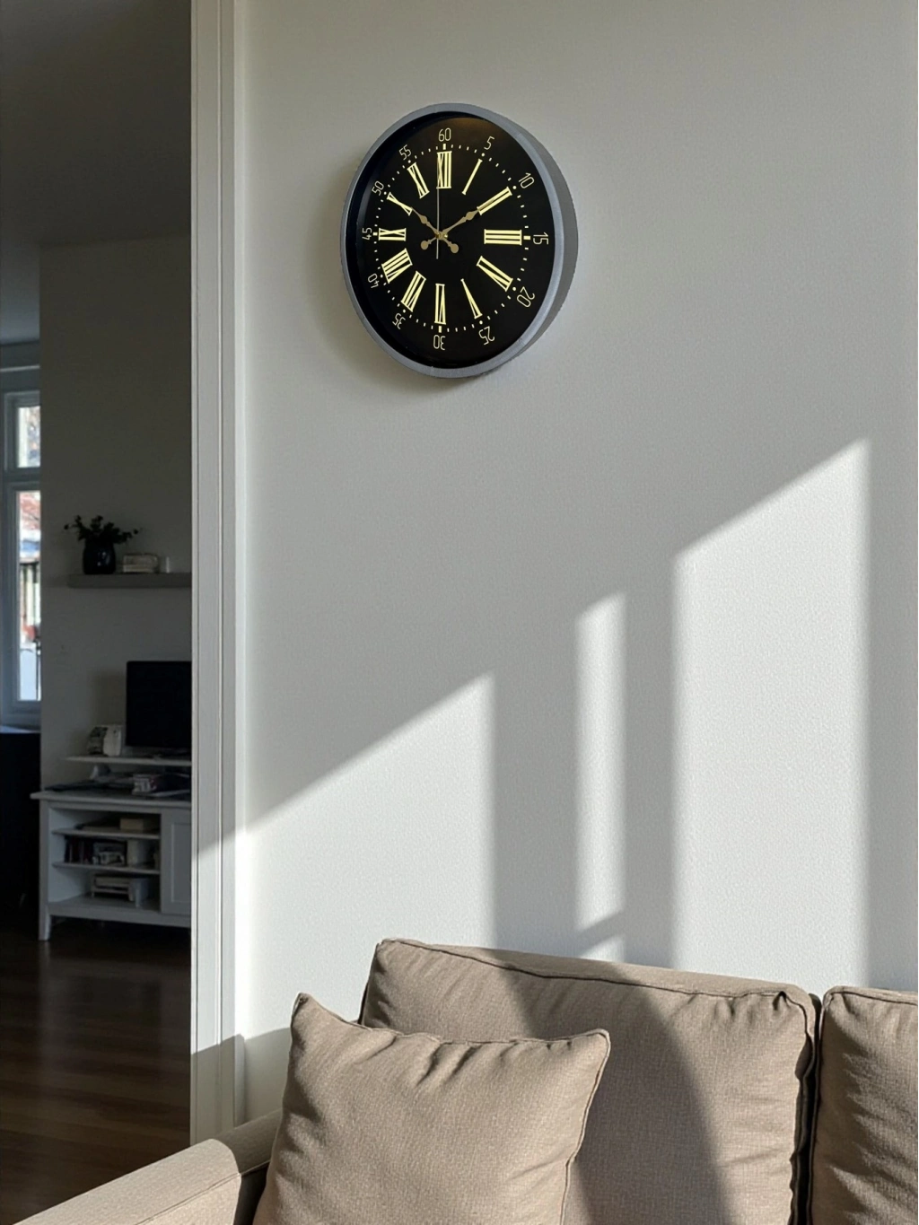 Modern ve şık dekorasyonu bir arada sunan 36 cm Gri Renk Duvar Saati, sade tasarımı ve gri-metal çerçevesiyle hem modern hem endüstriyel dekorasyon tarzlarına mükemmel uyum sağlar. Siyah arka plan üzerinde kullanılan altın tonlu Roma rakamları, saatin tasarımına lüks bir dokunuş katar ve bulunduğu ortamın estetik değerini artırır.