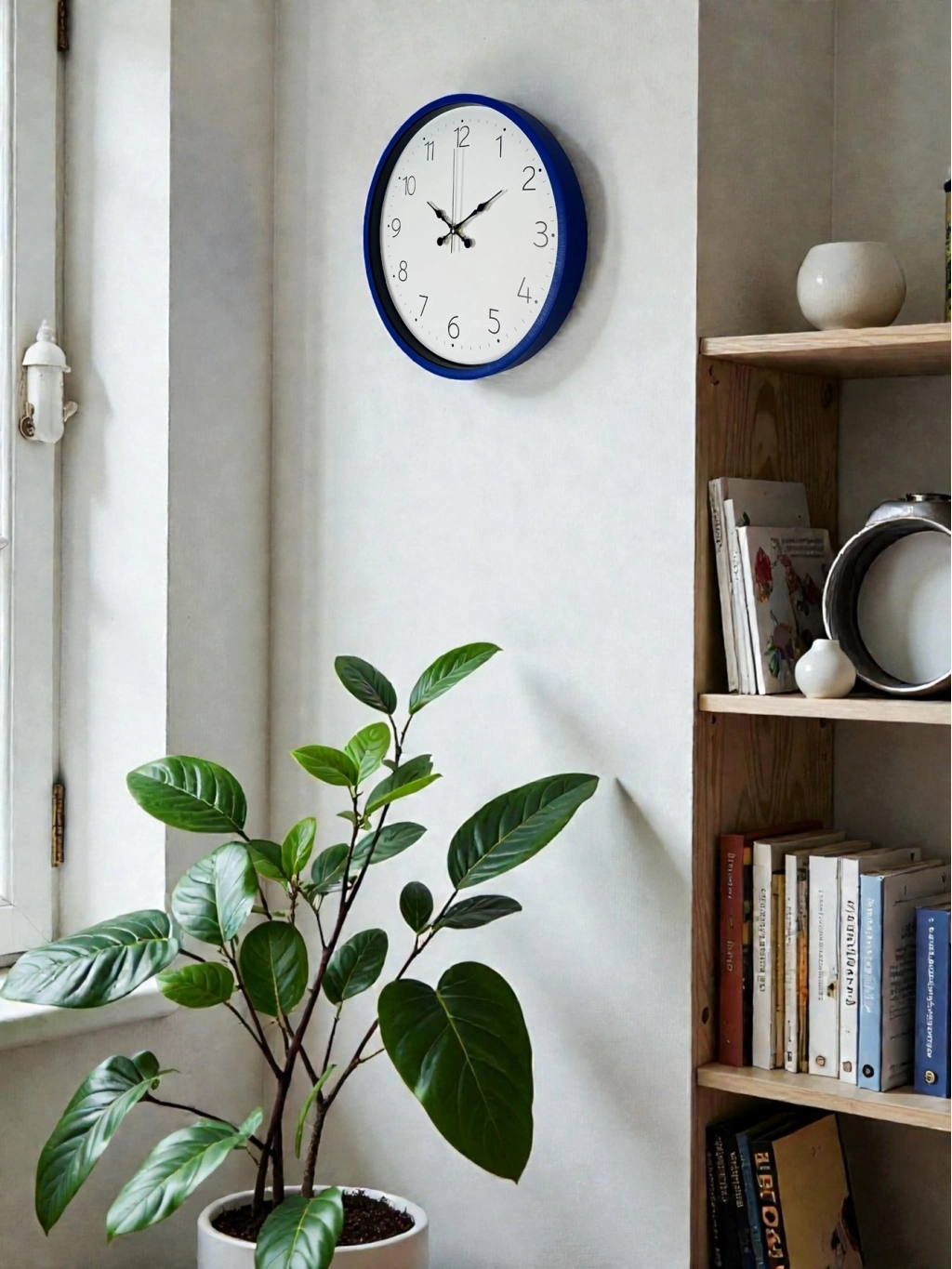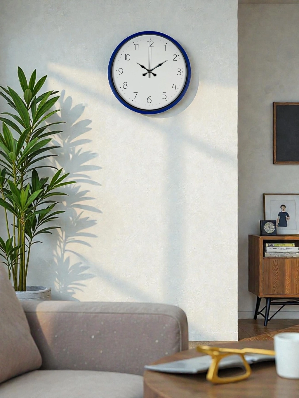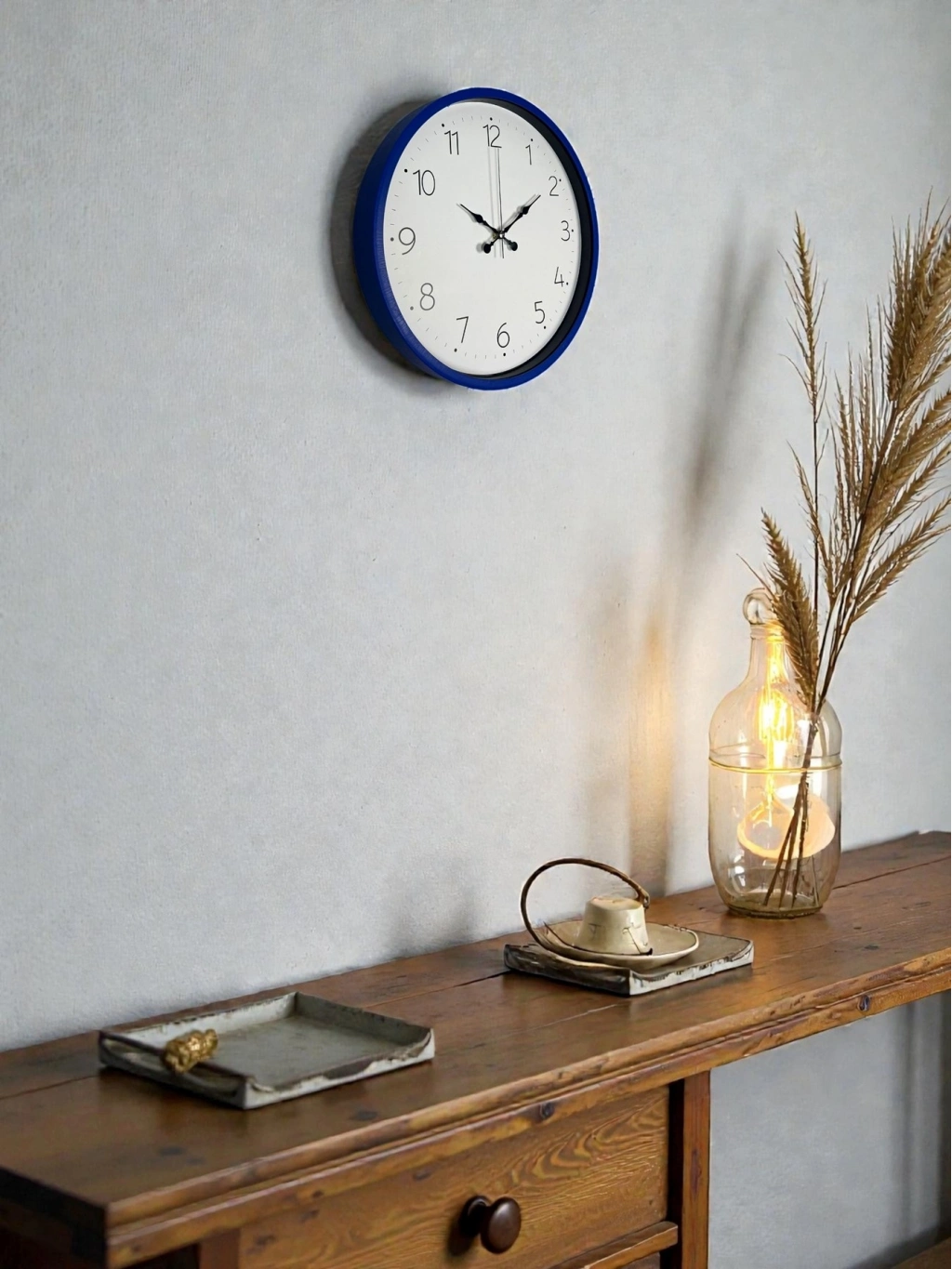 Lacivert çerçevesi ve beyaz zeminli kadranıyla tasarlanan bu 36 cm duvar saati, sade şıklığı modern çizgilerle buluşturur. Net ve büyük rakamları sayesinde zamanı uzaktan dahi kolayca okumaya imkân tanır. Günlük kullanım için pratik, dekoratif açıdan ise her ortama uyum sağlayan zamansız bir tasarıma sahiptir.