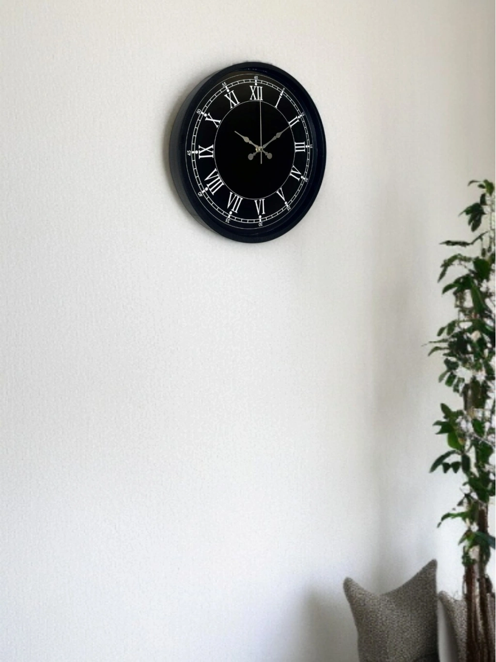 Klasik Roma rakamlarıyla tasarlanan bu 36 cm siyah duvar saati, zamansız şıklığı ve güçlü duruşuyla bulunduğu ortama karakter kazandırır. Siyah kadran üzerine yerleştirilen beyaz Roma rakamları, saatin hem estetik görünümünü hem de okunurluğunu artırır.