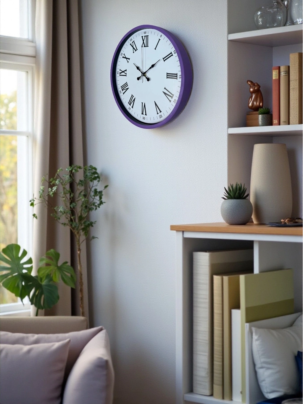 ® 36 Cm Mor Roma Rakamlı Dekoratif Duvar Saati
