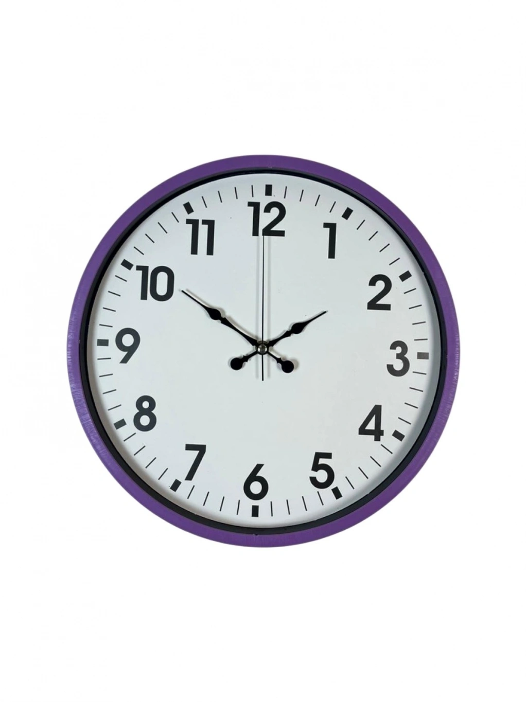 Modern çizgileri ve dikkat çekici mor çerçevesiyle bu 36 cm duvar saati, yaşam alanlarına hem enerji hem de estetik katan şık bir tasarımdır. Mor rengin zarif ve modern etkisi; salon, mutfak, ofis, genç odası, çalışma alanları veya dekoratif dokunuş isteyen tüm mekanlarda canlı bir atmosfer oluşturur. Büyük siyah rakamları ve sade beyaz zeminli kadranı sayesinde saat uzaktan dahi kolayca okunabilir.