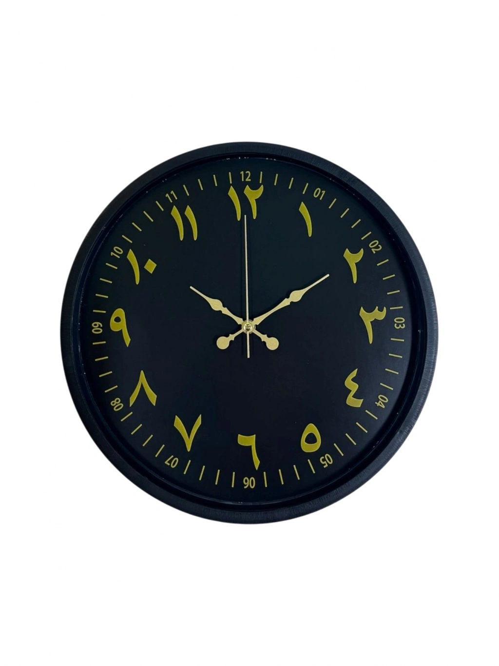 Siyah kadranı üzerinde yer alan gold tonlu Arapça rakamlarıyla öne çıkan bu 36 cm duvar saati, klasik saat anlayışını modern çizgilerle buluşturur. Arapça rakam tasarımı, saate farklı ve özgün bir karakter kazandırırken dekorasyona estetik bir dokunuş ekler.
