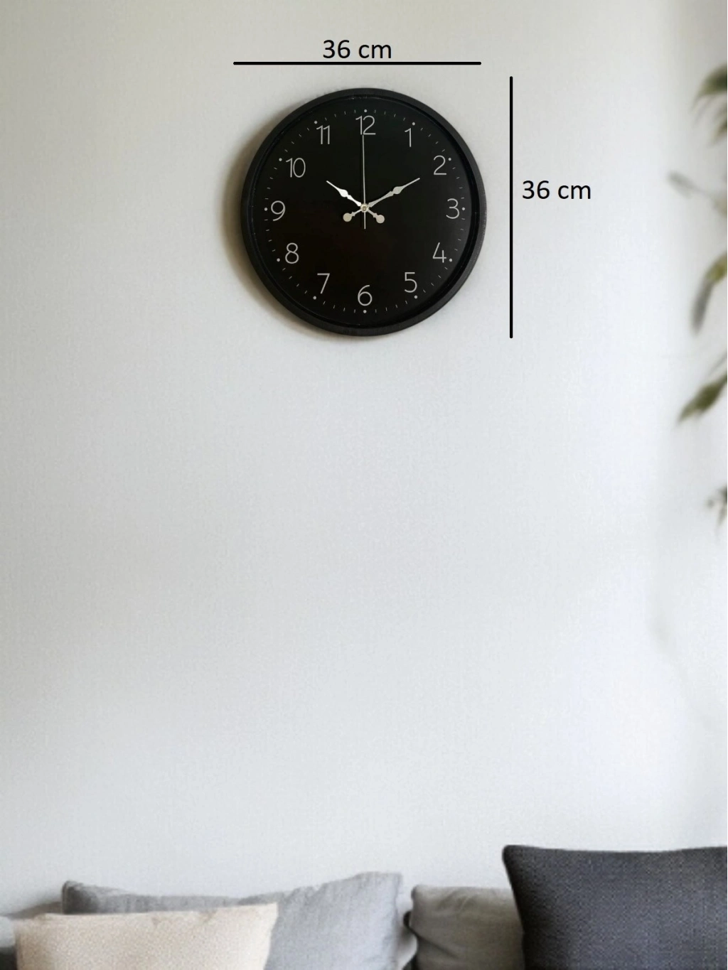 Mat siyah kadranı ve sade rakam tasarımıyla öne çıkan bu 36 cm duvar saati, modern yaşam alanları için şıklık ve fonksiyonelliği bir arada sunar. Beyaz rakamları ve zarif akrep-yelkovan yapısı sayesinde saat, uzaktan dahi kolayca okunur.