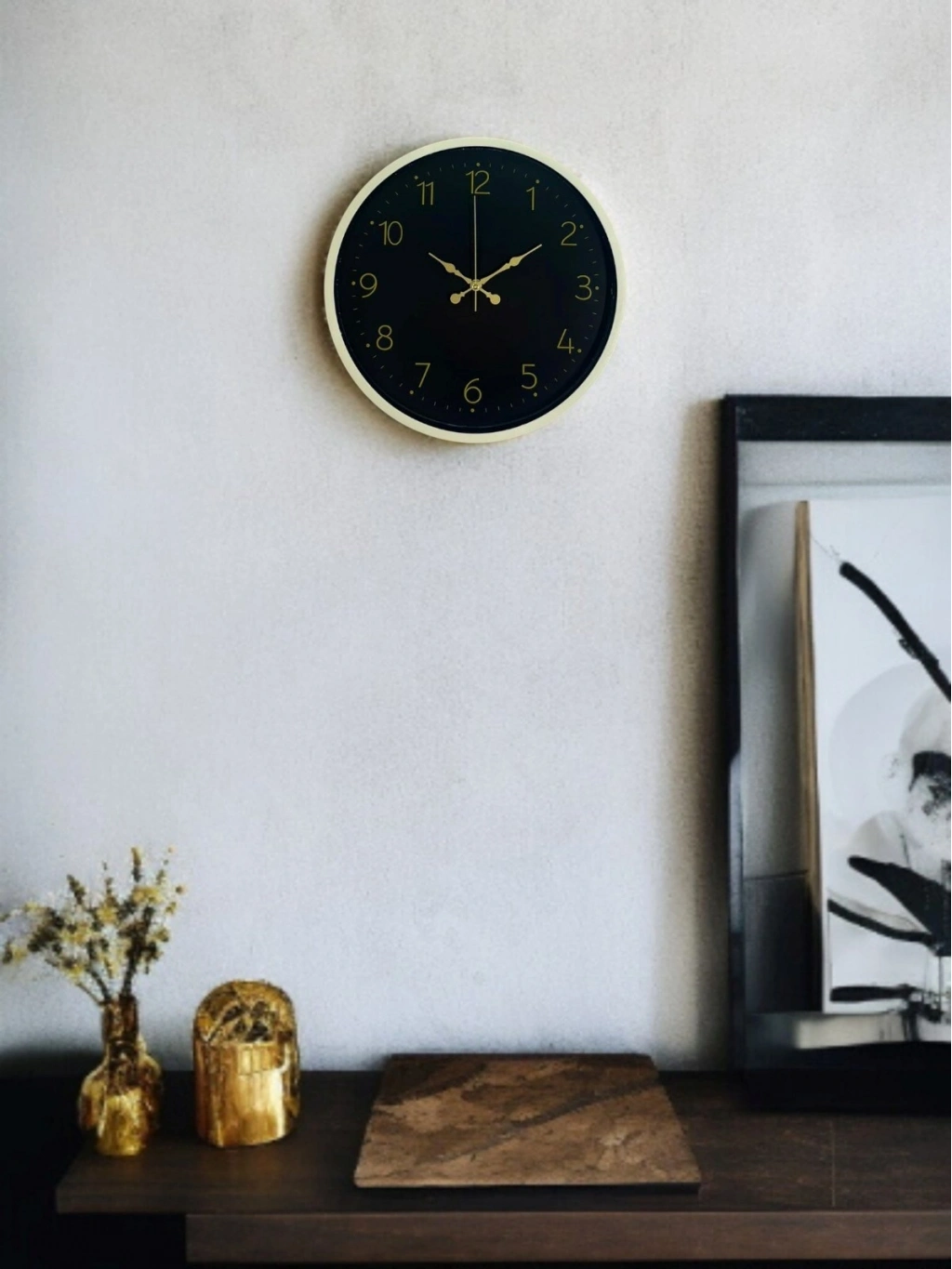 Krem renkli çerçevesi ile koyu zemin üzerindeki gold tonlu rakamları ve zarif akrep-yelkovan tasarımı sayesinde bu 36 cm duvar saati, bulunduğu ortama klasik ve sofistike bir hava katar. Net ve dengeli kadran yapısı, saatin her açıdan rahatlıkla okunmasını sağlar. Hem modern hem de klasik dekorasyon stilleriyle uyumlu, zamansız bir tasarıma sahiptir.
