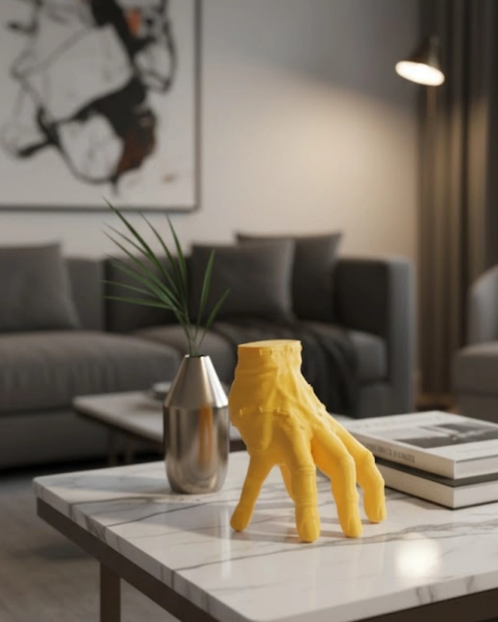 3D Dekoratif Sarı El Obje 17x16 cm, dekorasyonda özgünlük arayanlar için tasarlanmış sanatsal bir tasarım ürünüdür. Heykelsi yapısı ve dikkat çekici rengi sayesinde bulunduğu ortamın atmosferini güçlendirir.Konsol üzerinde tek başına sergilenebilir ya da mum, çerçeve ve kitaplarla kombinlenerek estetik bir dekor kompozisyonu oluşturulabilir. Özellikle açık tonlu duvar önünde kullanıldığında güçlü bir kontrast sağlar.Sarı tonun canlılığı mekâna dinamizm ve sıcaklık katar. Ev hediyesi olarak da farklı ve unutulmaz bir alternatif sunar.