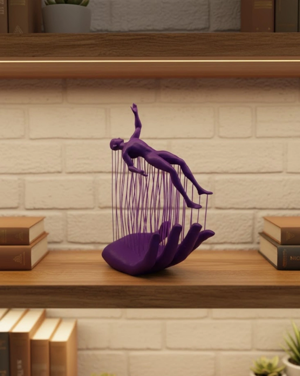 Özgün tasarımıyla fark yaratan 3D El Formlu İnsan Figürü Mor, dekorasyona sanatsal bir kimlik kazandırır. İnsan figürünün el formu üzerinde yükselir gibi durması, ürüne hareket ve soyut bir anlatım kazandırır.Dayanıklı malzemeden üretilmiş olup uzun süre formunu ve canlı rengini korur. Ev ve ofis dekorasyonunda estetik bir tamamlayıcı olarak kullanılabilir. Kendiniz için özel bir parça ya da özgün bir hediye alternatifi arıyorsanız, bu mor biblo güçlü ve şık bir tercihtir.