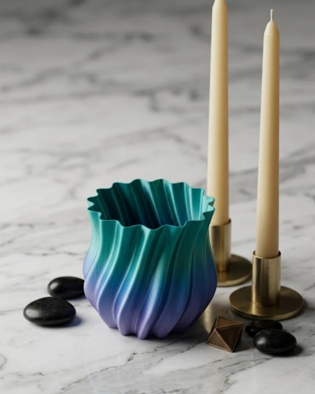 3D KIVRIMLI VAZO MAVİ