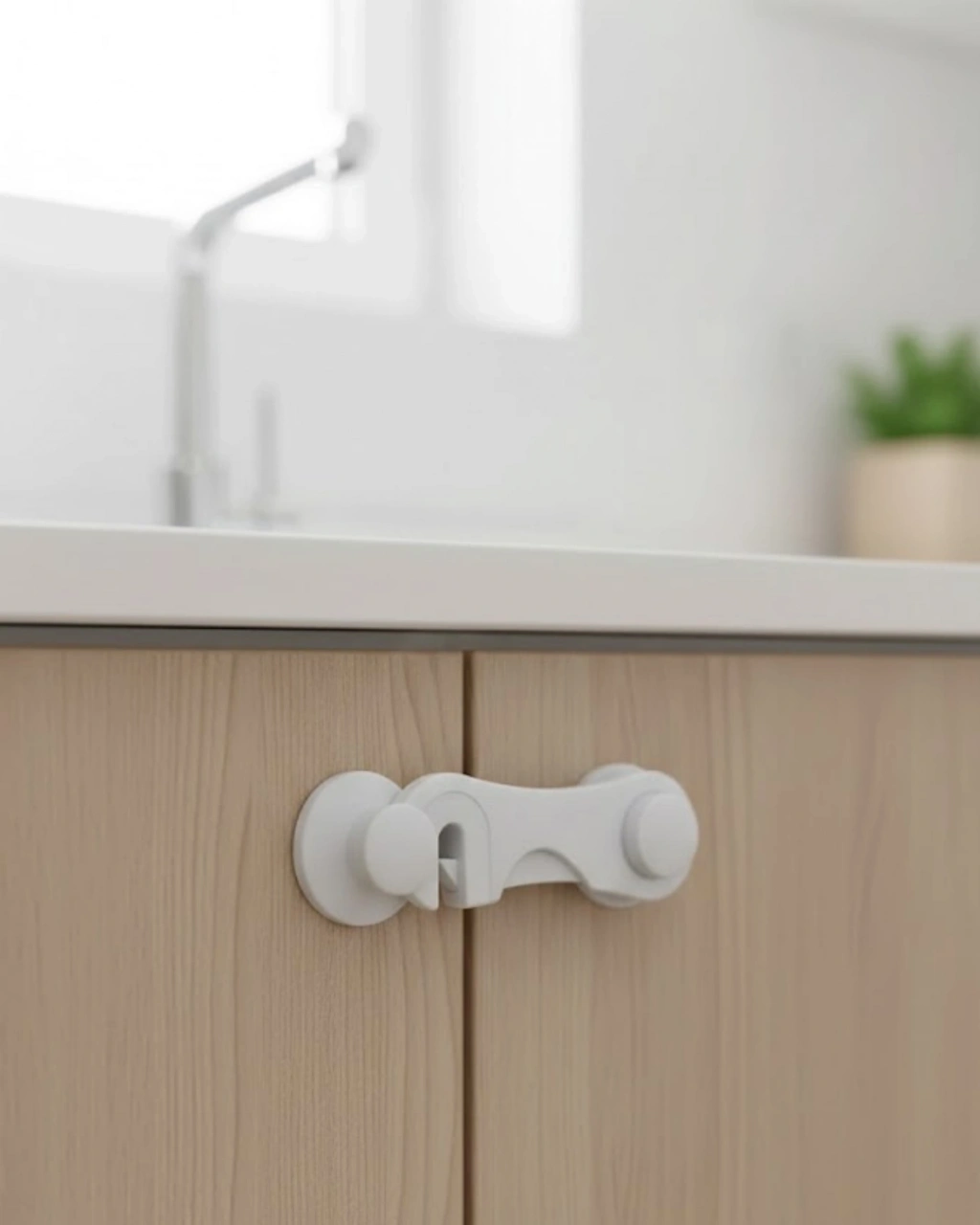 Evdeki meraklı çocuklar için dolap kapakları ciddi bir risk oluşturabilir. 4 adet dolap güvenlik kilidi seti, çocukların dolapları açmasını engelleyerek ebeveynlere güvenli ve huzurlu bir yaşam alanı sunar. Pratik kullanımı sayesinde mutfak, banyo, salon ve yatak odası gibi evin birçok alanında rahatlıkla tercih edilebilir. Ürün, çift taraflı güçlü yapışkan bant sistemi ile tasarlandığı için montaj sırasında vida, matkap ya da herhangi bir alete ihtiyaç duyulmaz. Yüzeyin temizlenmesi yeterlidir; kısa sürede sağlam bir şekilde sabitlenir.Dayanıklı plastik gövdesi sayesinde günlük açma ve kapama işlemlerinde formunu korur. Çocukların çekme ve zorlamalarına karşı dirençli yapısı ile uzun süreli kullanım imkânı sunar. Sade ve beyaz tasarımı, ev dekorasyonuna uyum sağlayarak göze batmaz. Keskin köşe içermeyen yapısı sayesinde çocuklar için güvenlidir.Ahşap, plastik ve metal yüzeylerde rahatlıkla kullanılabilir. İhtiyaç halinde sökülebilir ve yüzeyde iz bırakmaz. Ev içinde güvenliği artırmak isteyen aileler için ideal bir çözümdür.