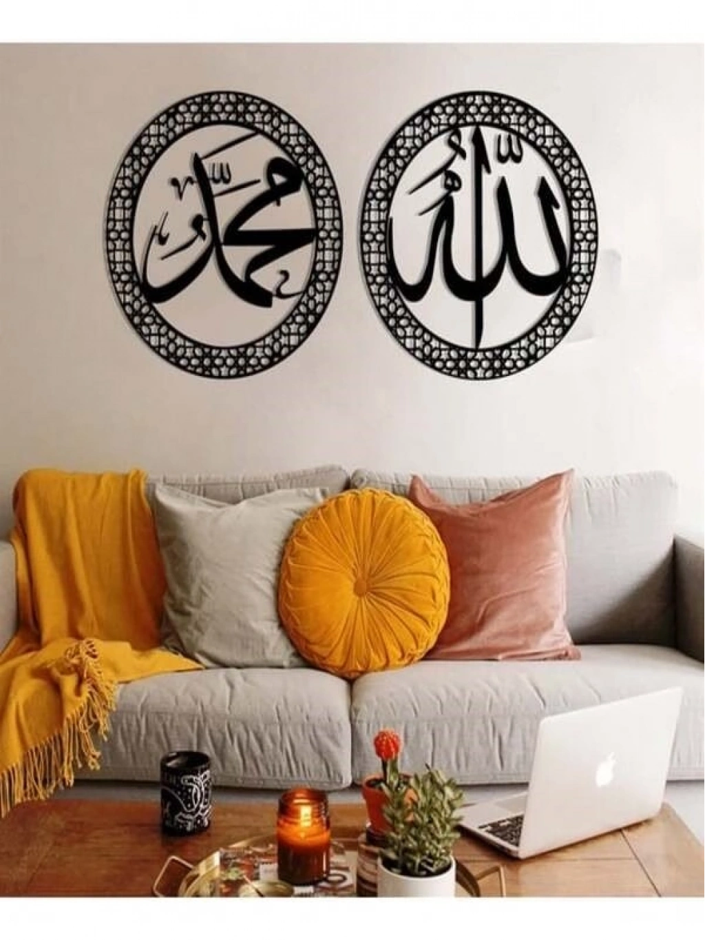 Bu özel tasarım, İslami hat sanatından ilham alınarak hazırlanmış, “Allah” ve Hazreti Muhammed (s.a.v.) lafızlarını zarif bir çerçeve içinde sunan ahşap duvar dekorudur. Manevi değeri yüksek bu ürün, bulunduğu ortama huzur, anlam ve estetik bir atmosfer kazandırır.