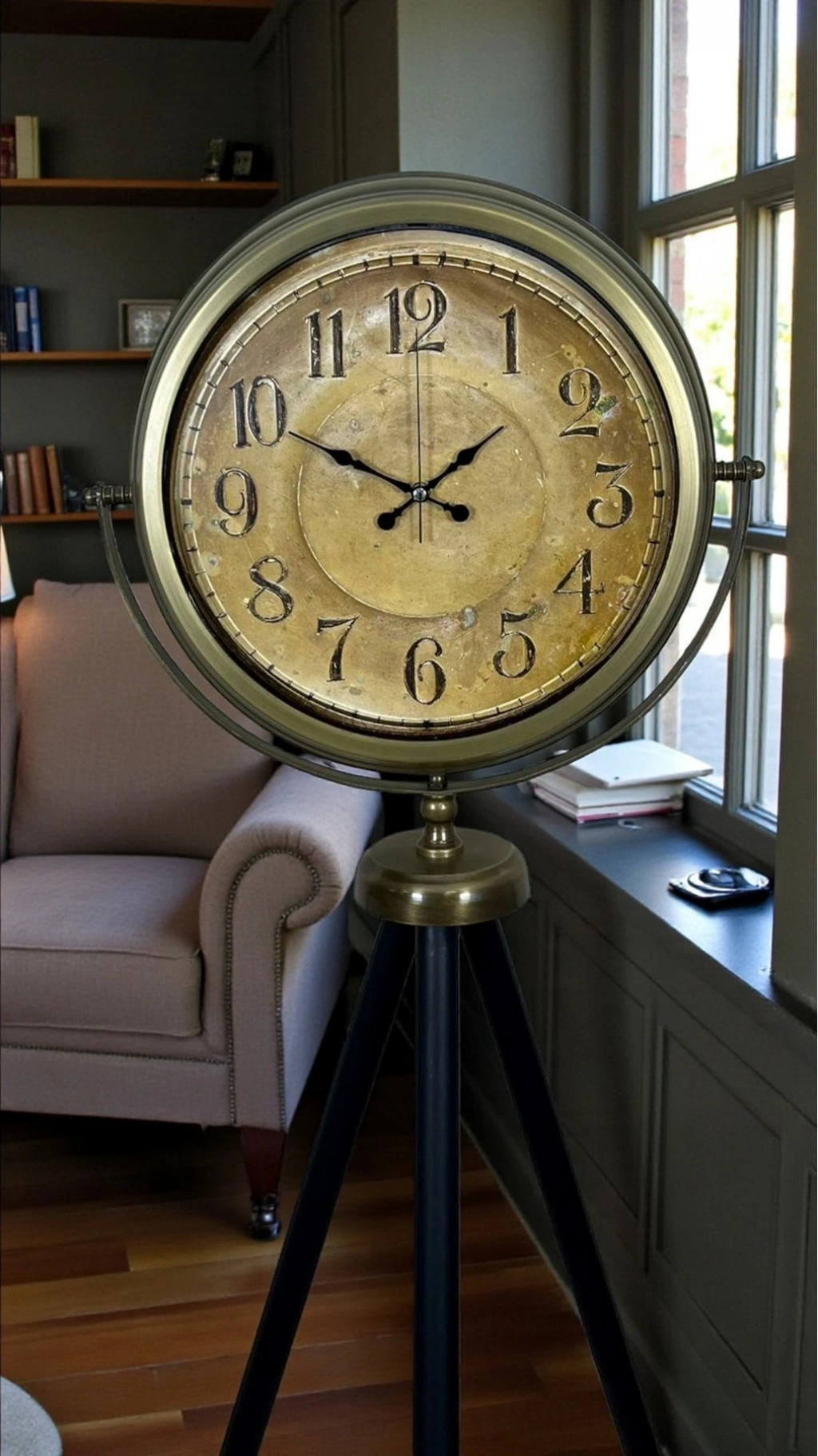 ✅ Tripod Ayaklı Yer Saati: Dengeli yapı, dekoratif ve modern bir sunum.