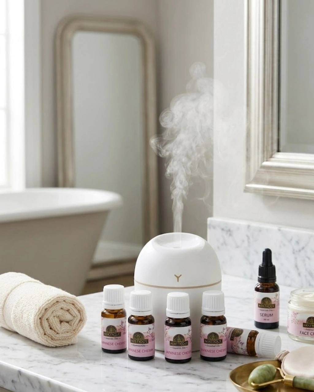 Aromaterapi Hava Nemlendirici USB Çalışan Sessiz LED Işıklı Cihaz 5 Esans Hediyeli