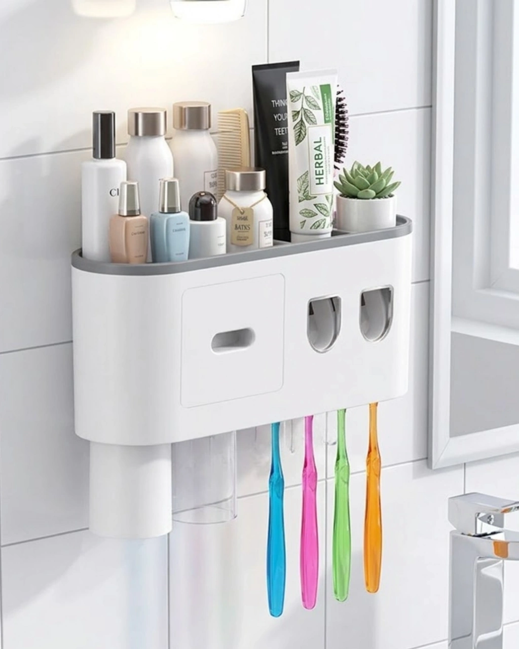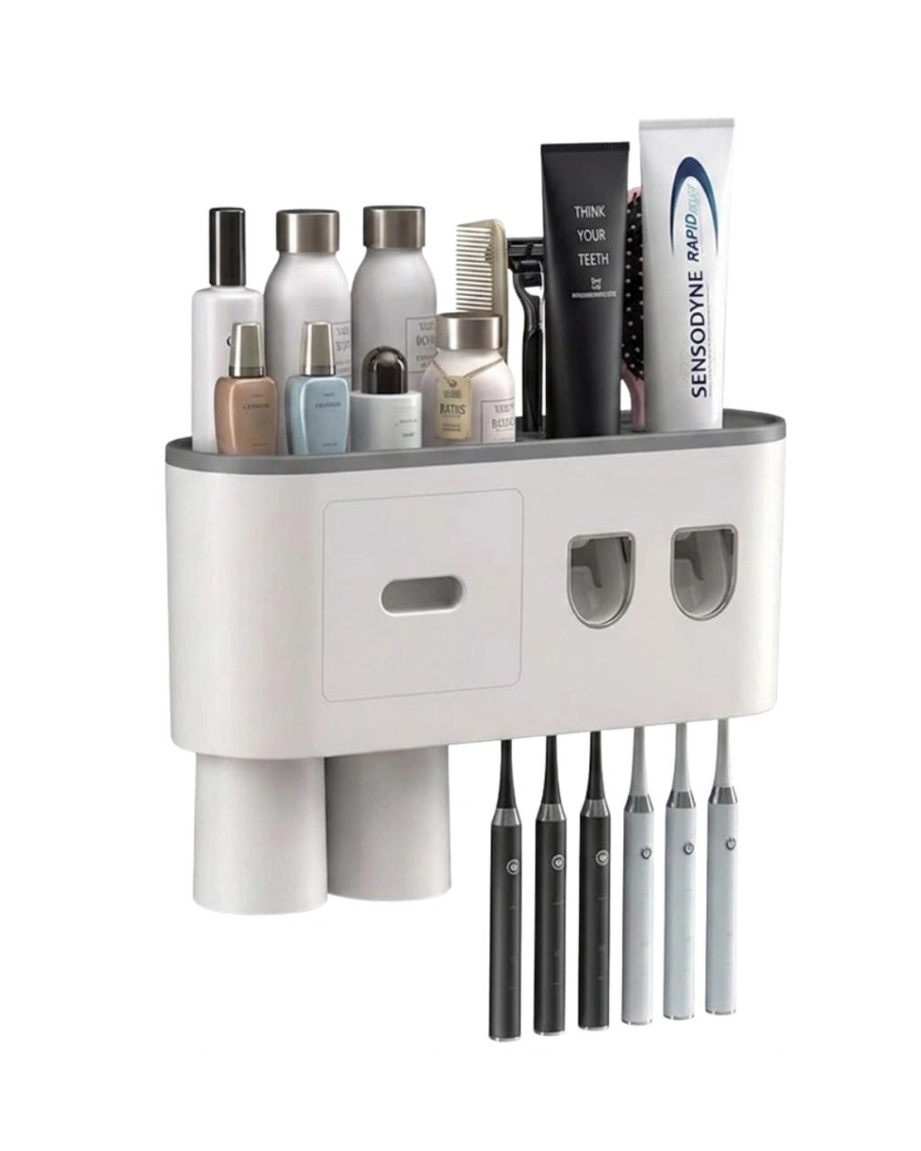 Banyo Organizer Diş Fırçası Tutucu Çift Dispenserli Raflı Çekmeceli