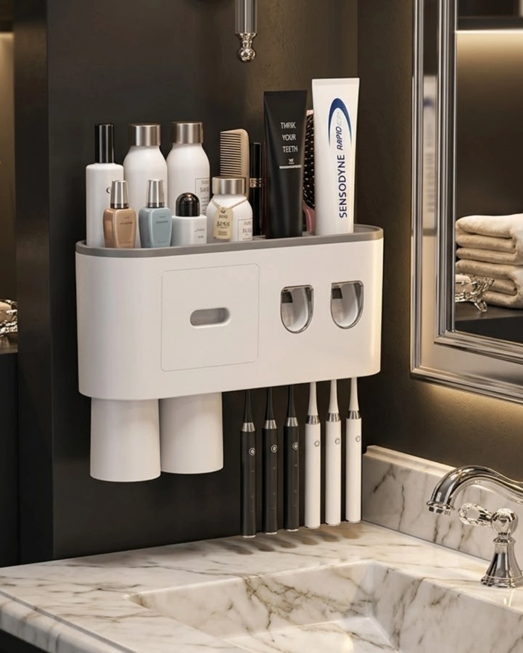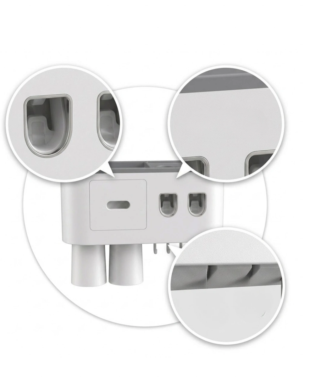 Çift Dispenserli Diş Macunu Sıkacağı 6 Fırçalık Bardaklı Banyo Organizer