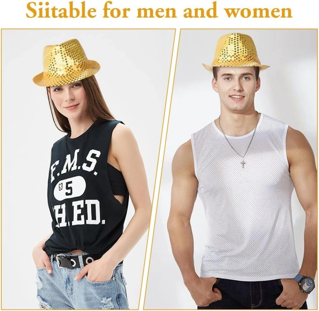 Disko Star Altın Gold Payetli Fötr Şapka Yetişkin Boy