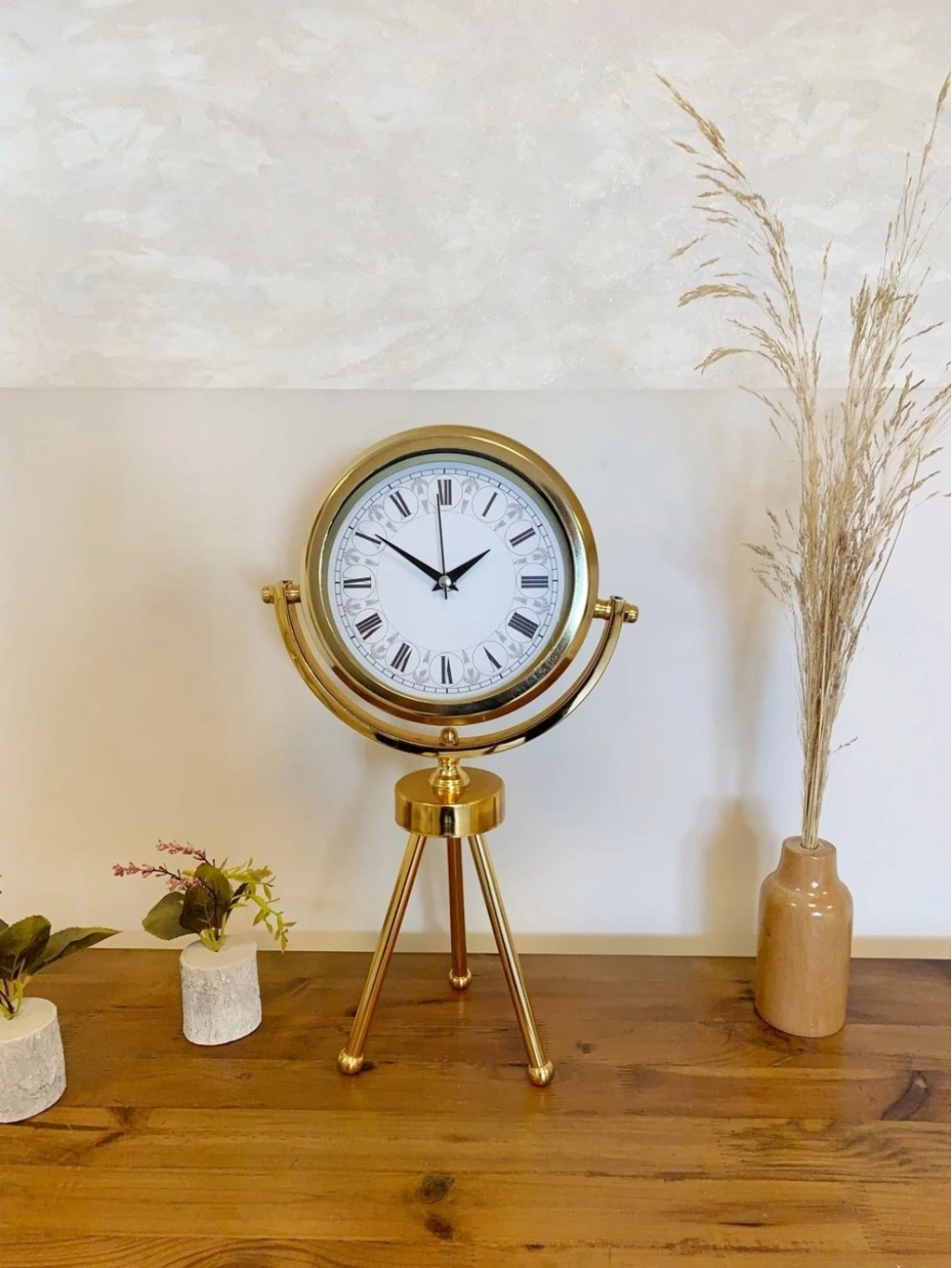® Gold Metal Mini Tripod Desenli Roma Rakamı Masa Saati 45×26 cm