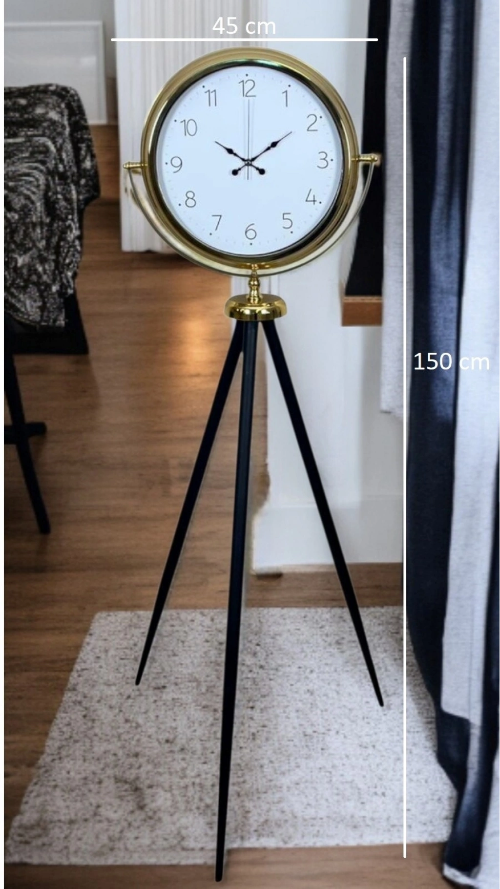 ?️ Gold Tripod Ayaklı Dekoratif Saat – 150 × 45 cm