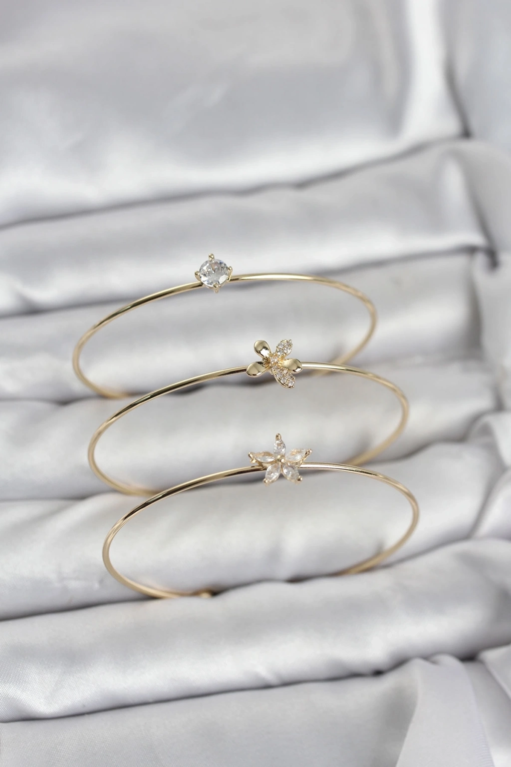 ® Gold Renk Zirkon Taşlı Pirinç 3'lü Kadın Bileklik Kombini