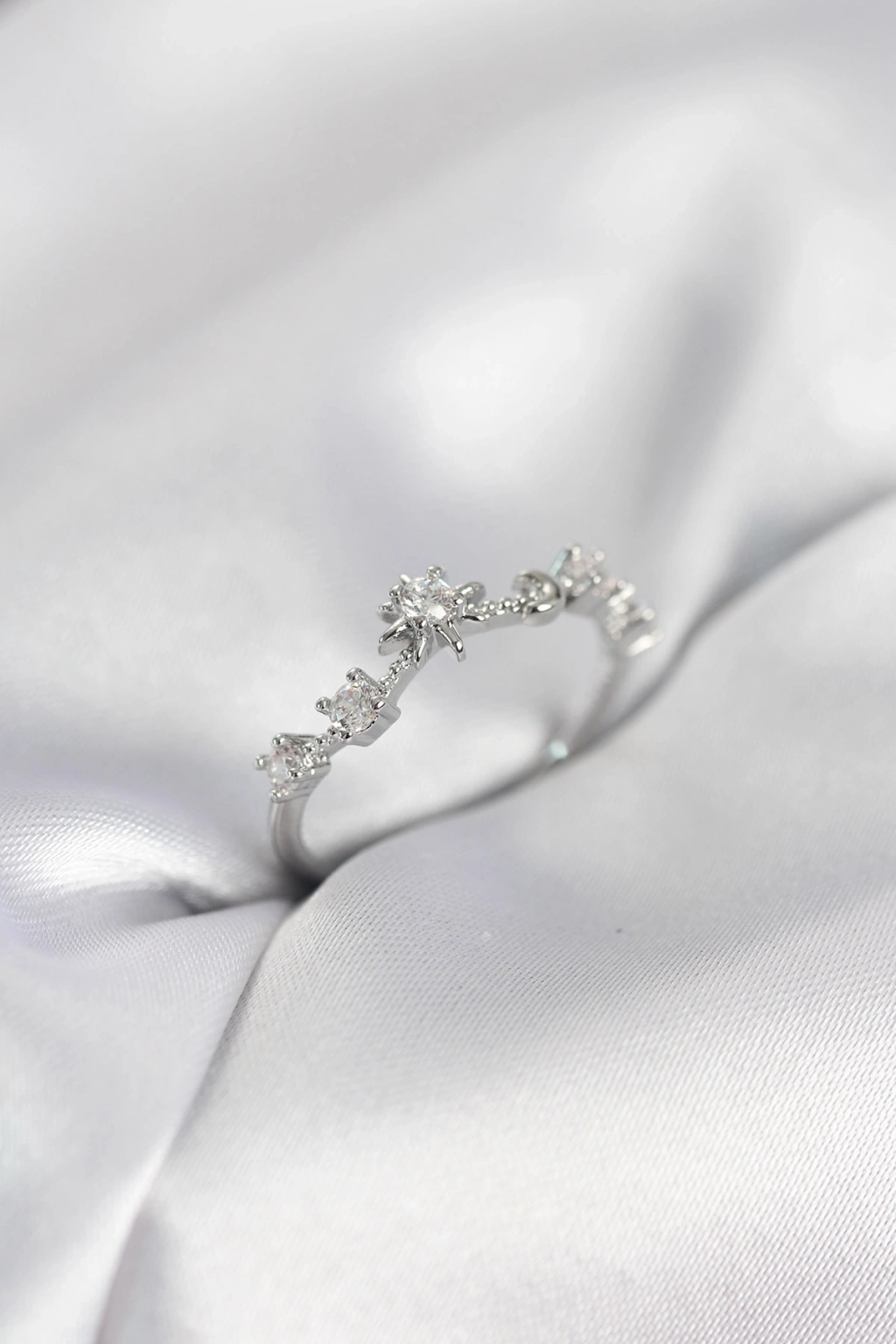 ® Gümüş Renk Gece Temalı Zirkon Taşlı Kadın Yüzük