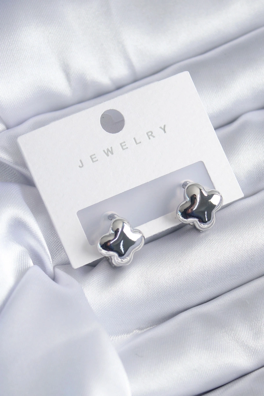 ® Gümüş Renk Yonca Model Pirinç Kadın Küpe