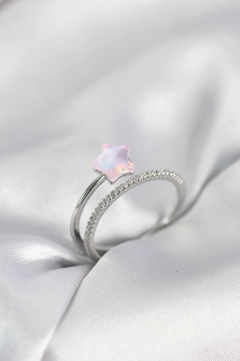 ® Gümüş Renk Zirkon Taşlı Pembe Halley Model Kadın Yüzük