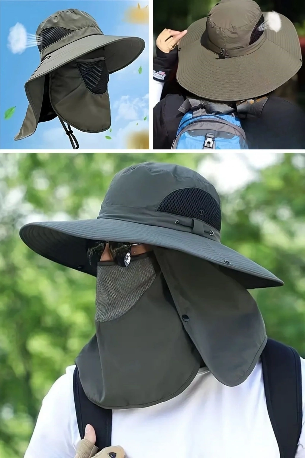 ® Güneş Koruyuculu Nefes Alabilen Maskeli ve Boyun Kapaklı Geniş Kenarlı Balıkçı Şapkası