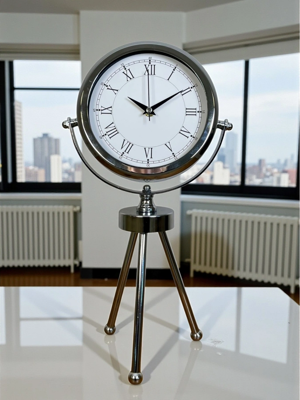 ® Heritage Üç Ayaklı Krom Metal Masa Saati