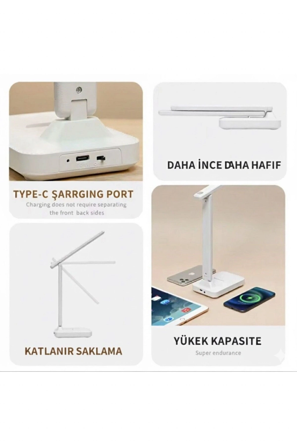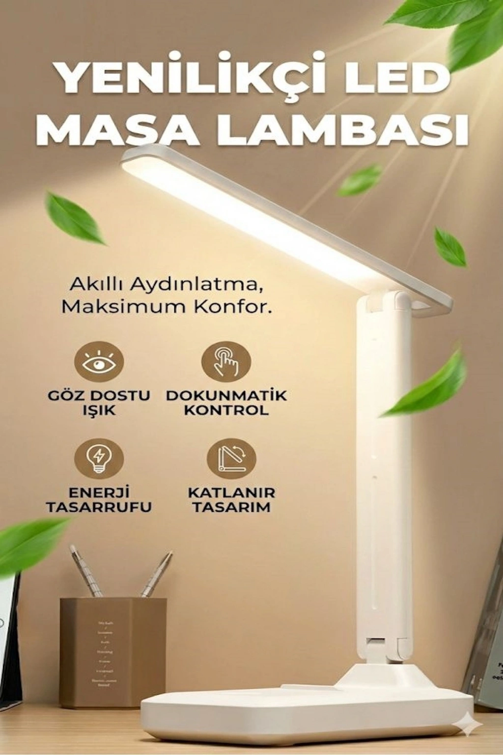 Çalışma alanınıza hem şıklık hem de konfor katan Yenilikçi Akıllı LED Masa ası, modern tasarımı ve üstün işlevleriyle verimli bir aydınlatma deneyimi sunar.; Göz dostu ışık teknolojisi sayesinde uzun süreli kullanımda bile gözlerinizi yormaz; ders çalışma, ofis kullanımı, kitap okuma ve tasarım gibi hassas işler için idealdir.; Dokunmatik kontrol paneli ile ışık seviyesini kolayca ayarlayabilir, istediğiniz ortamı zahmetsizce oluşturabilirsiniz.; Katlanabilir yapısı sayesinde minimum yer kaplar, taşınabilir ve kolay saklanabilir formdadır.; Üstelik enerji tasarruflu LED teknolojisi sayesinde düşük güç tüketimi ile maksimum verim sağlar.; ⸻ ? Öne Çıkan Özellikler: • ? Göz Dostu Doğal Işık – Uzun kullanımlarda konfor sağlar, göz yorgunluğunu azaltır.; • ? Dokunmatik Kontrol Paneli – Tek dokunuşla aydınlatma ayarı.; • ? Enerji Tasarruflu LED Teknolojisi – Uzun ömürlü, düşük elektrik tüketimi.; • ? Katlanabilir ve Taşınabilir Tasarım – Minimalist, yer kaplamayan yapı.; • ? Akıllı Aydınlatma Deneyimi – Maksimum konfor, modern yaşam alanlarına uyumlu.;