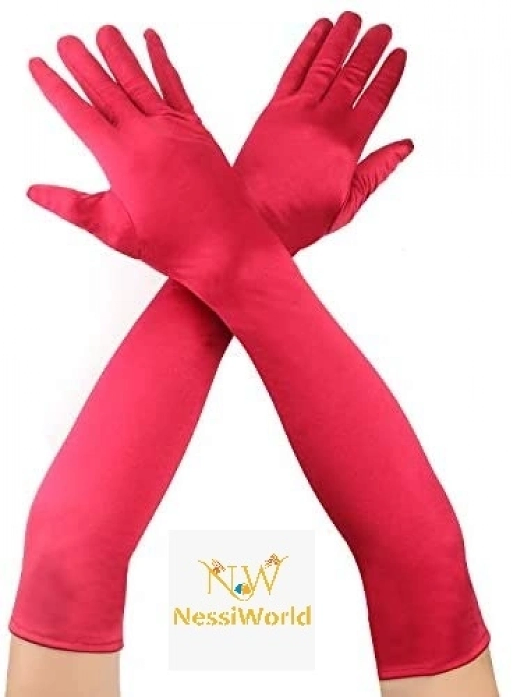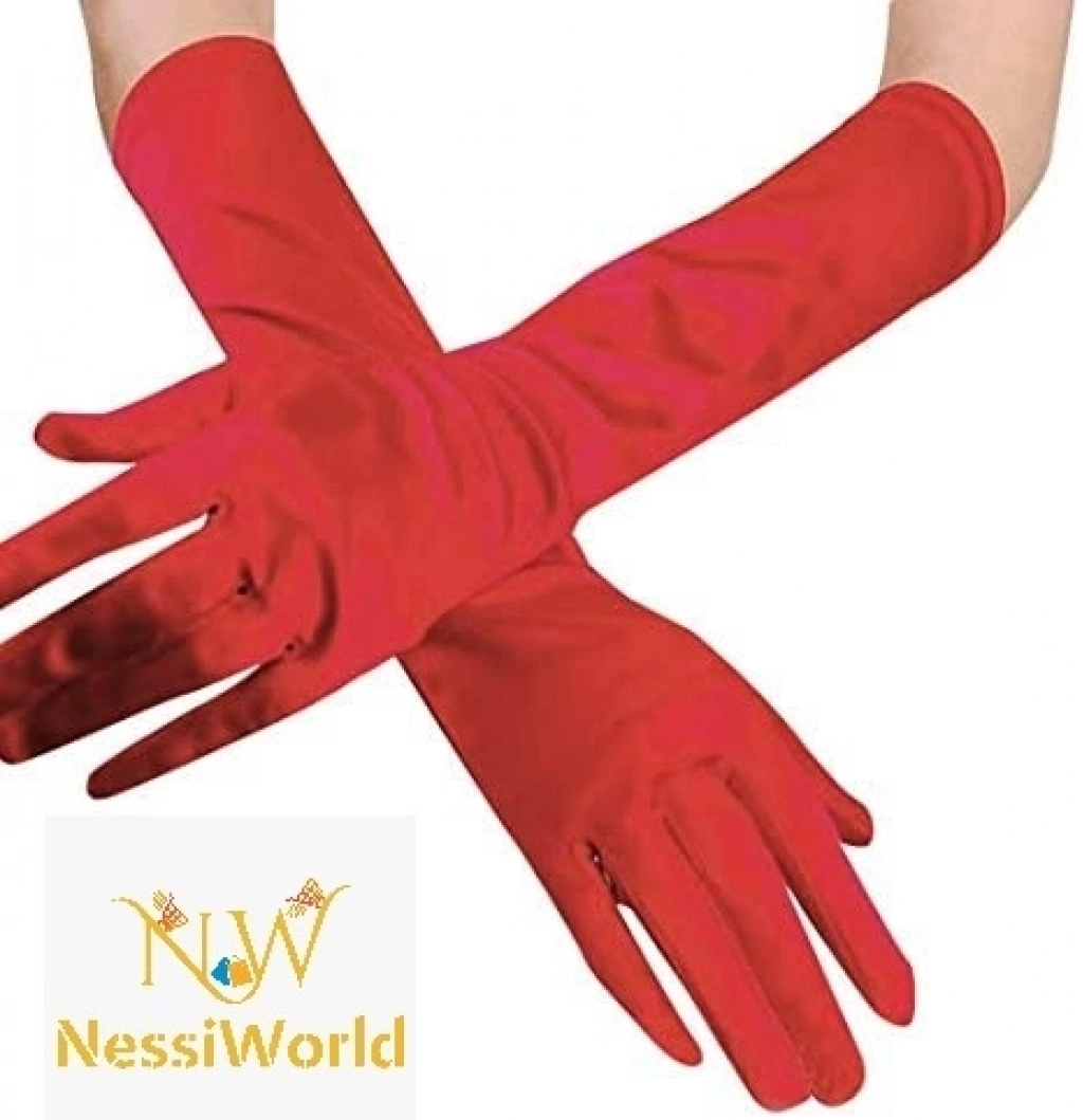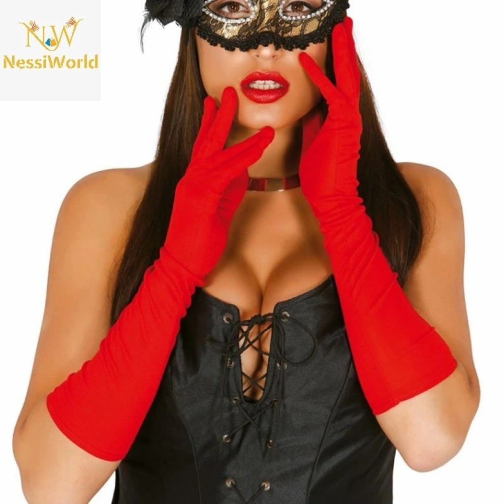 Kırmızı Renk Dirseğe Kadar Uzun Kumaş Eldiven 40 cm