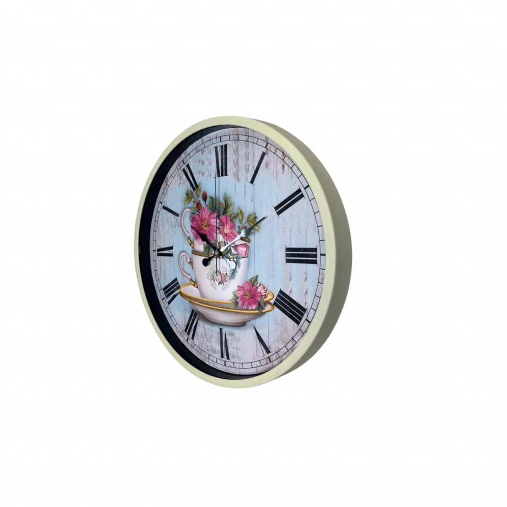 Krem 36 Cm Çiçek Figürlü Duvar Saati