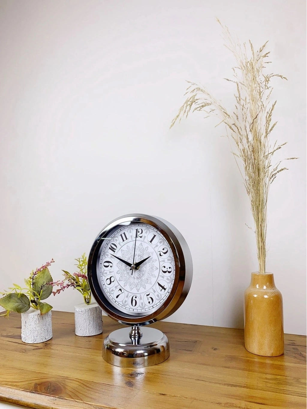 Şık ve modern tasarımıyla dikkat çeken krom kaplama masa saatimiz, sessiz akar saniye mekanizmasıyla konforlu bir kullanım sunar. Gerçek cam koruma paneli sayesinde uzun ömürlü ve dayanıklıdır. Estetik görünümüyle hem ev hem de iş yerleri için ideal bir dekoratif üründür.